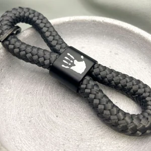 Dieser hochwertige, geflochtene Schlüsselanhänger lässt sich durch Ihre persönliche Gravur auf einem zusätzlichen Gravur Plättchen personalisieren.