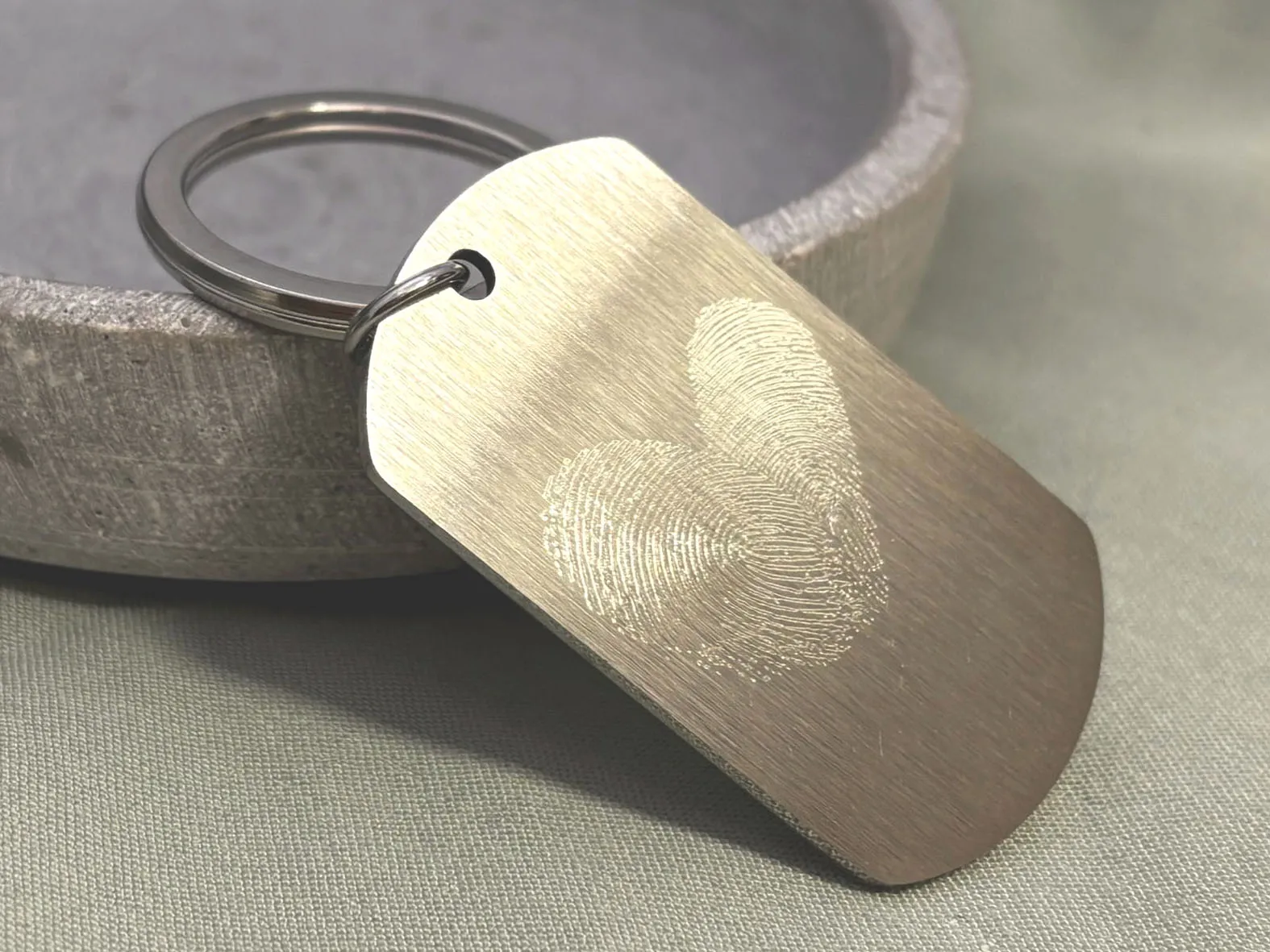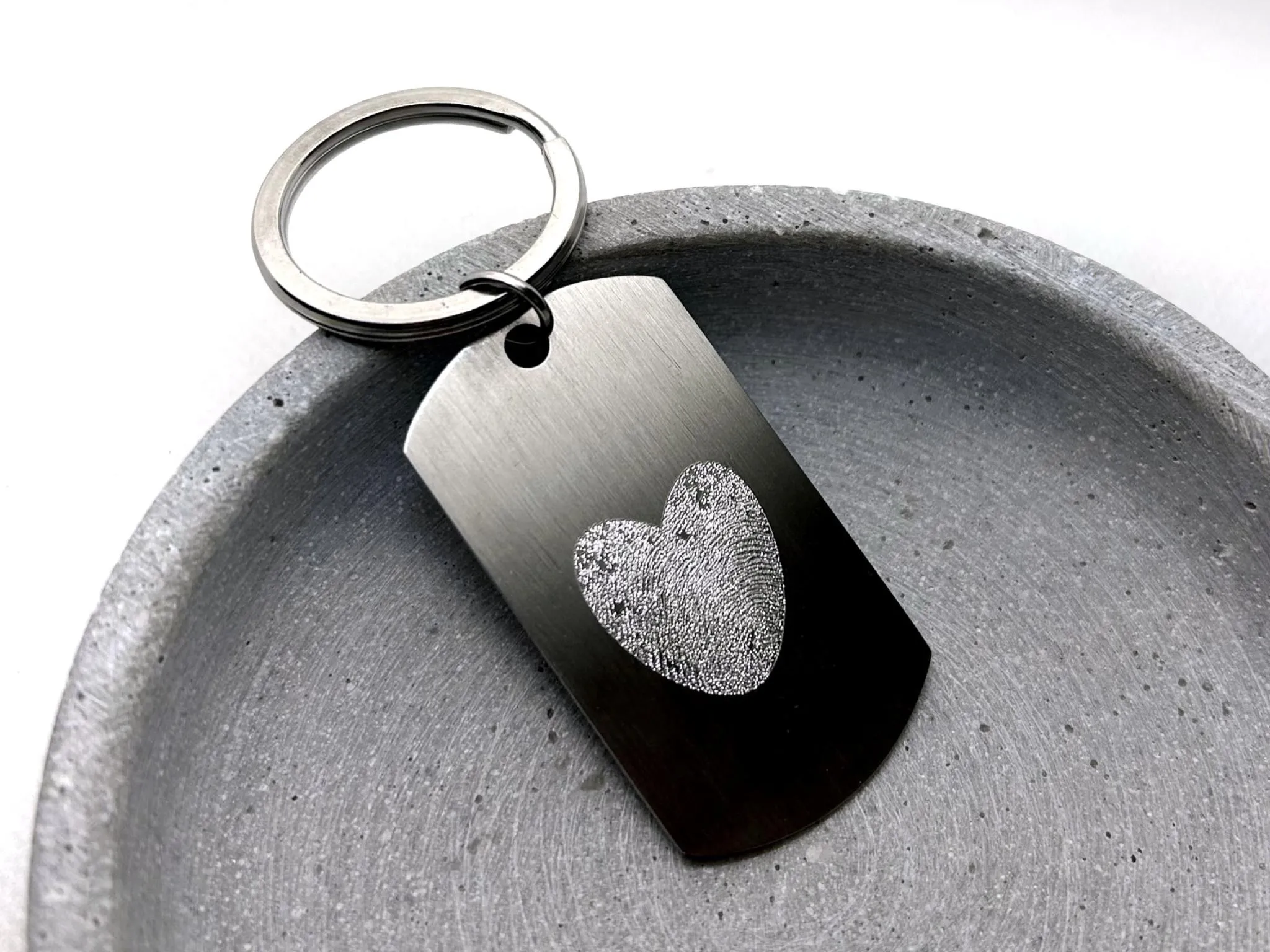 Hochwertiger Schlüsselanhänger mit individueller Gravur, Fingerabdruck in Herzform