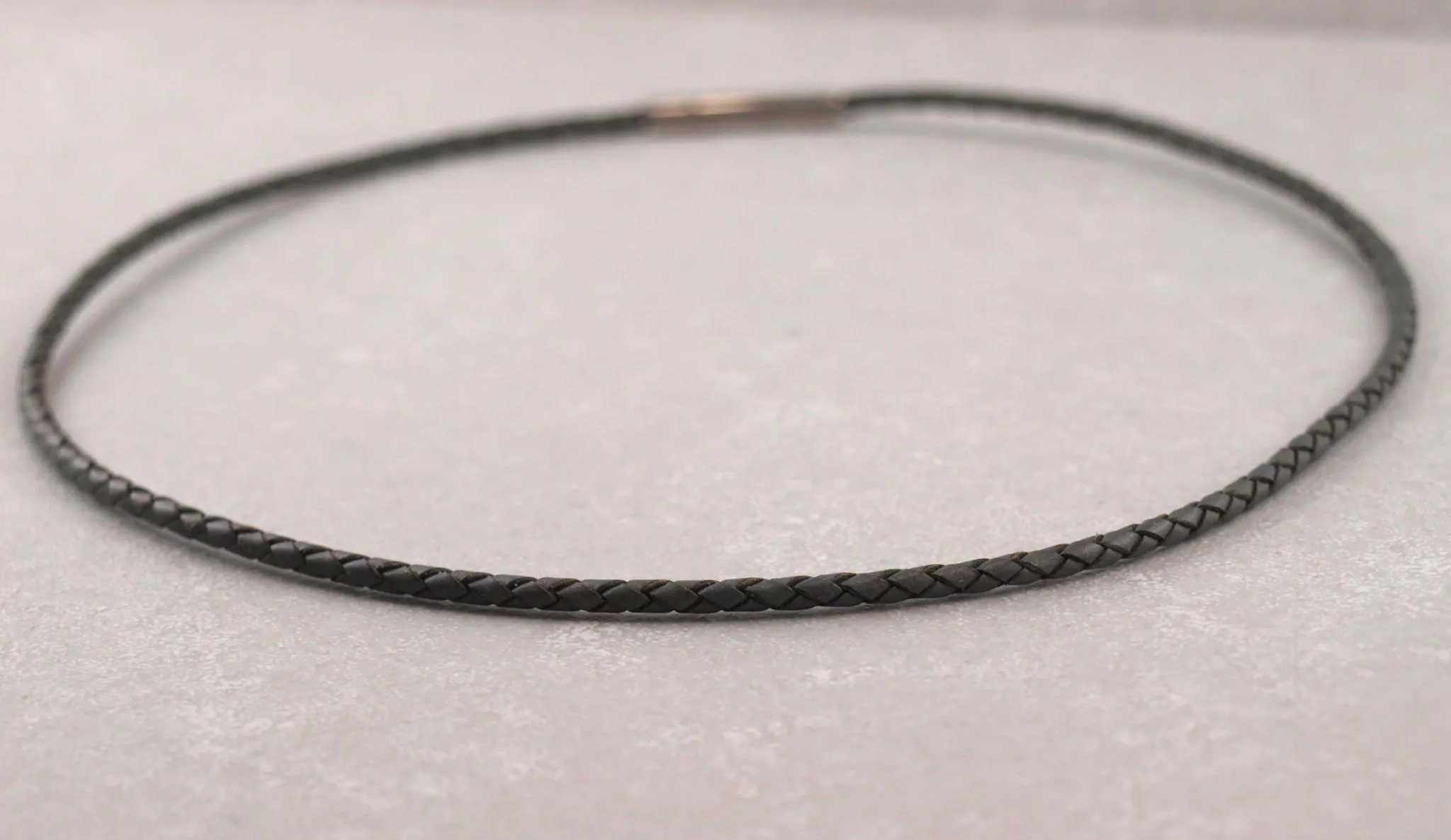 - Kette aus geflochtenem Rindsleder mit Edelstahl-Hebelverschluss