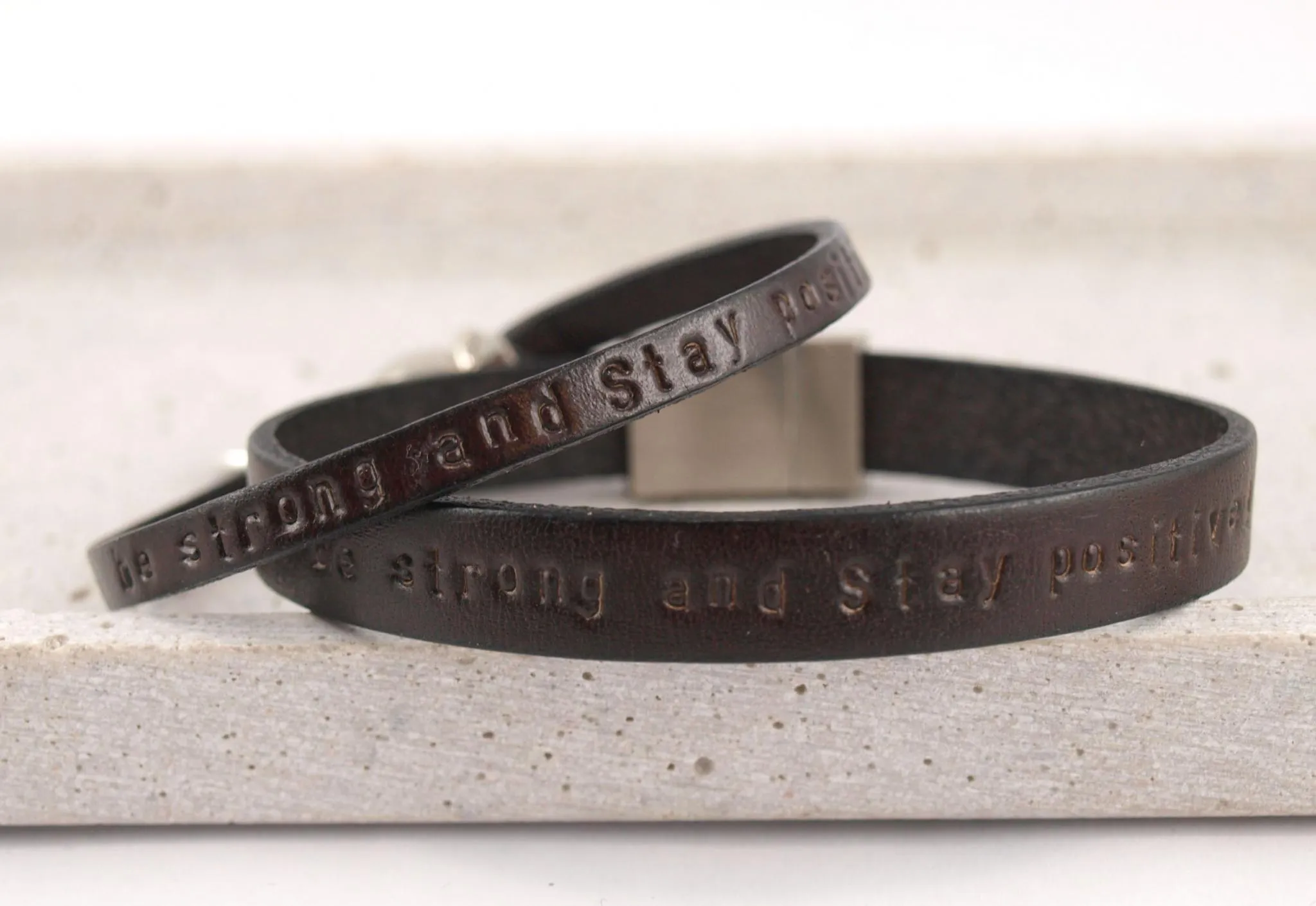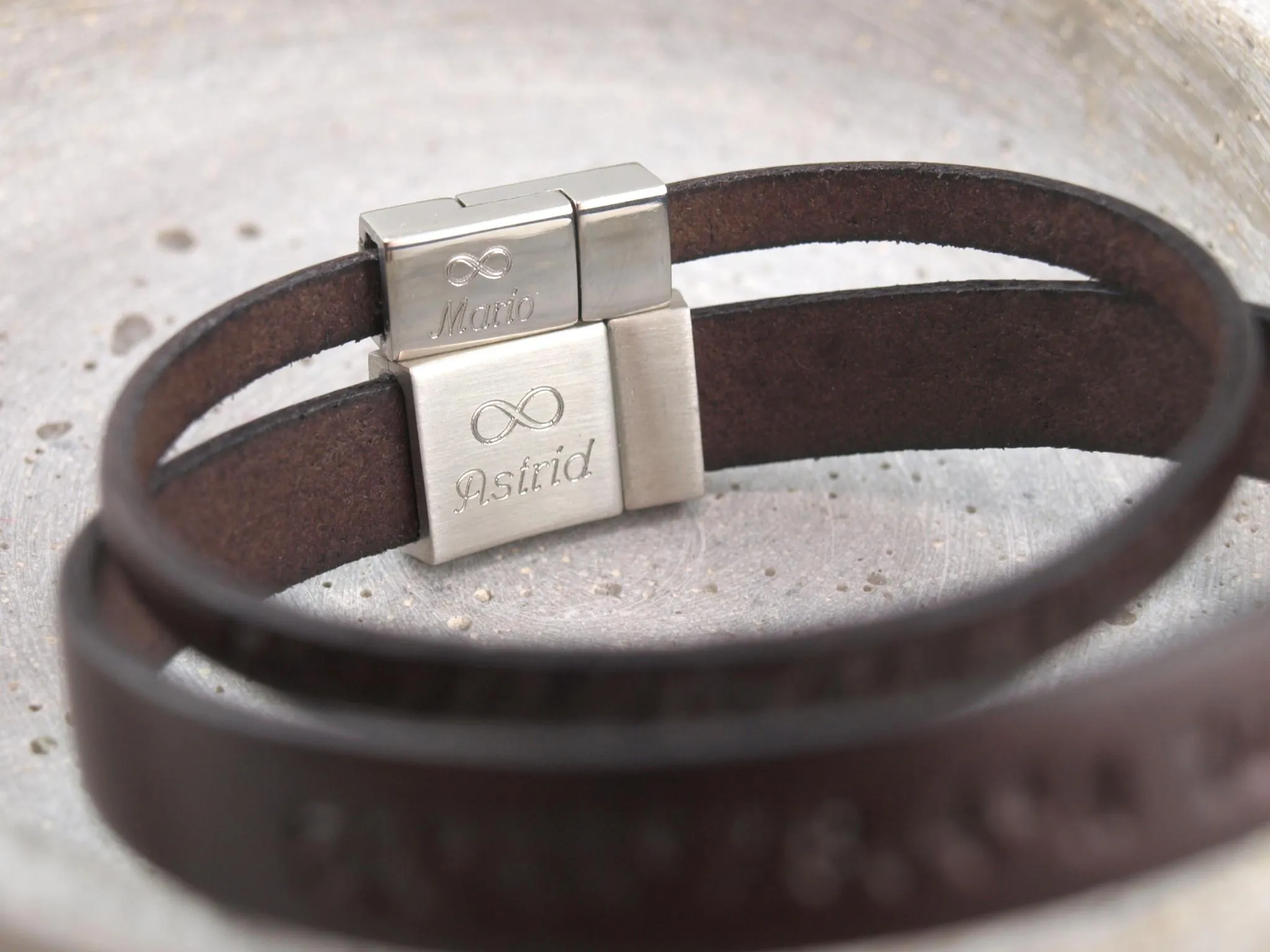 Partnerarmbänder aus Leder mit Gravur Optionen, ein schmales und ein breites Armband