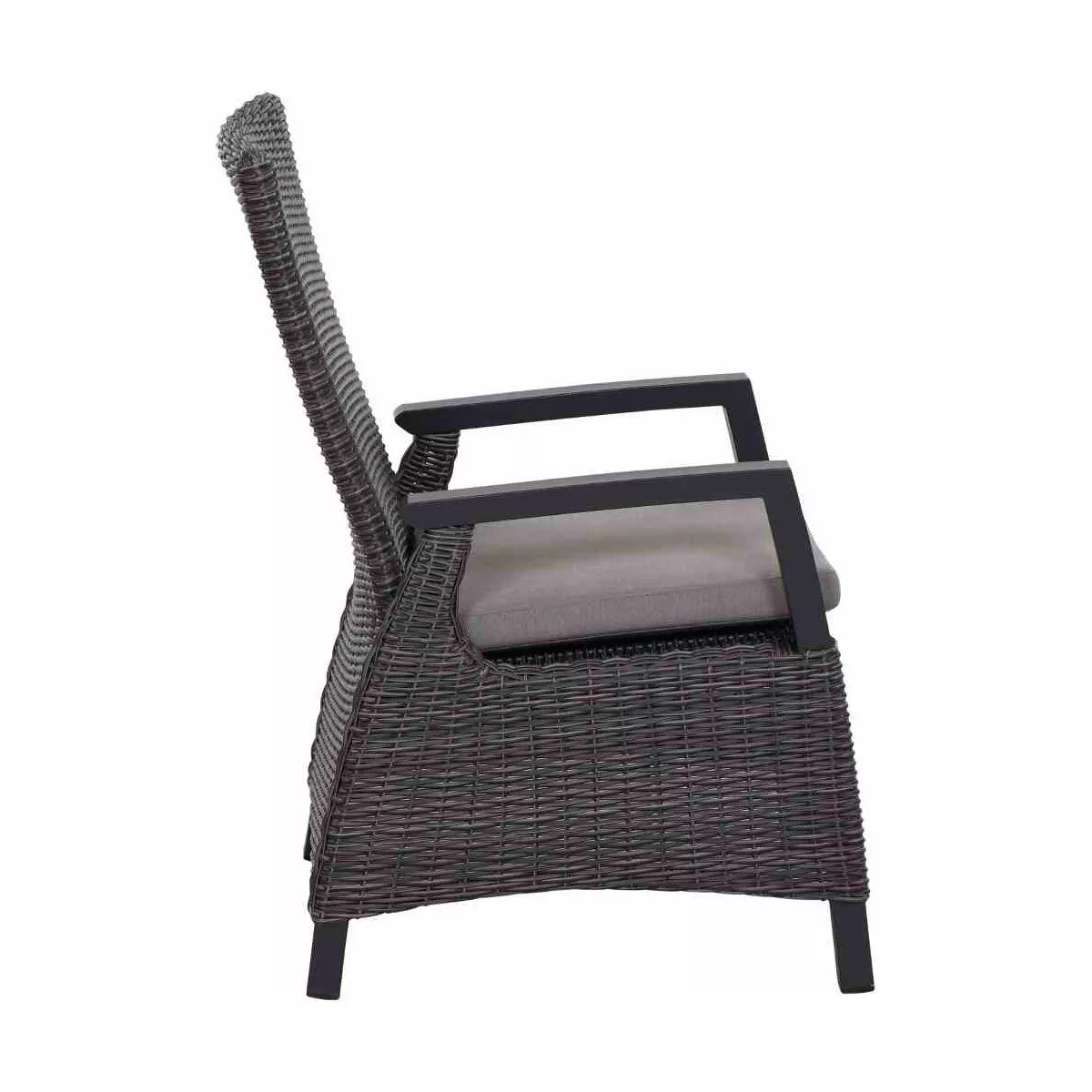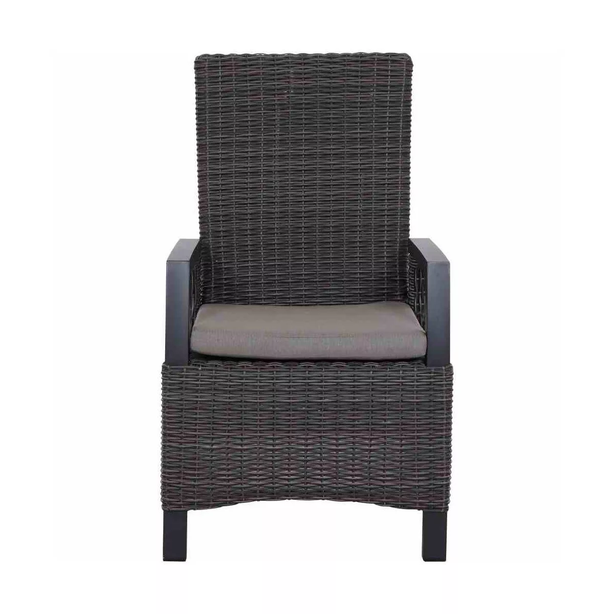 Das Gestell des Diningsessels “Corido” ist mit einem hochwertigen, halbrunden Gardino®–Geflecht aus Polyrattan umwoben. Das Geflecht in der Farbe Charcoal grey verleiht dem Sessel einen natürlichen Charakter. Es verfügt über eine hohe UV-Beständigkeit, ist witterungsbeständig und äußerst schmutzunempfindlich.