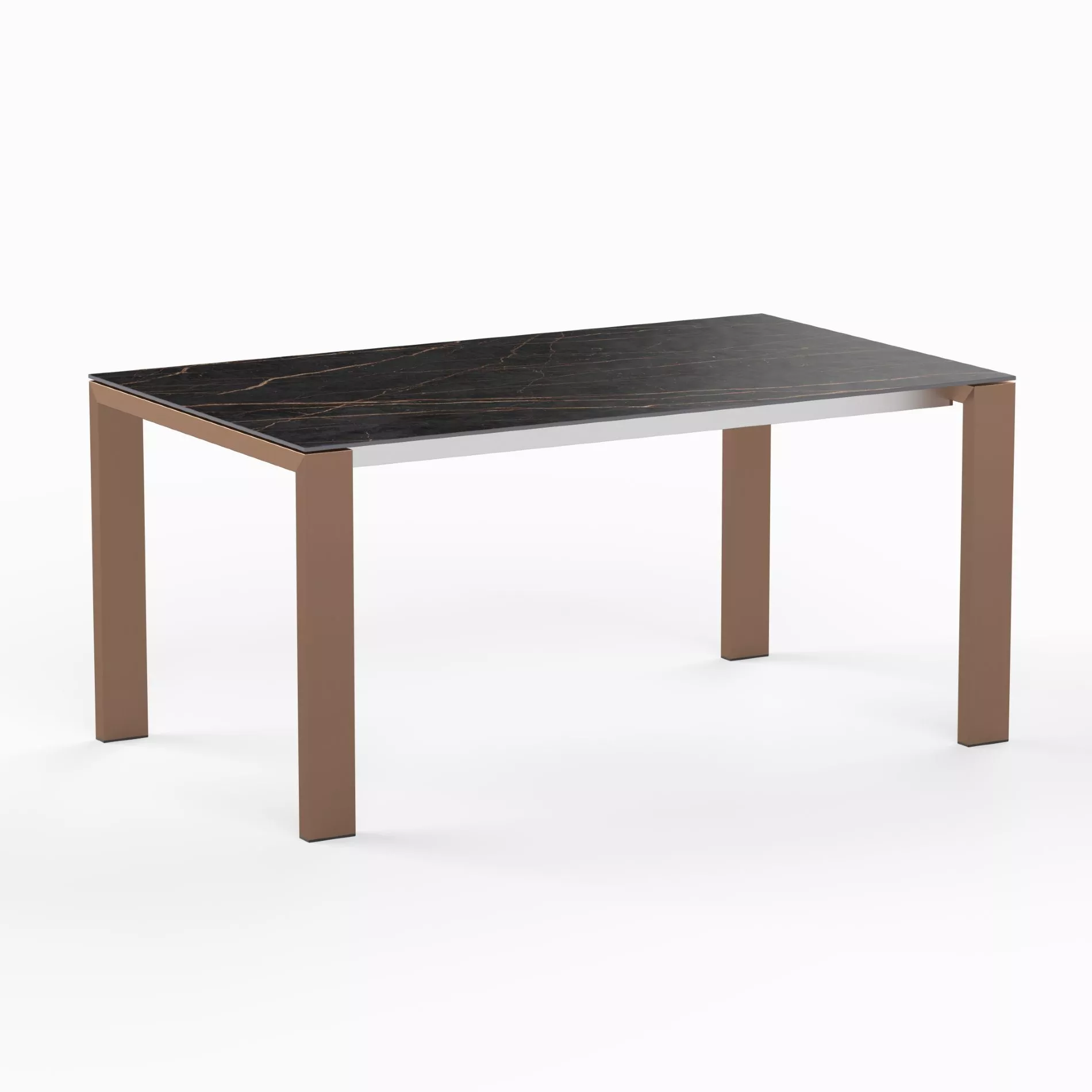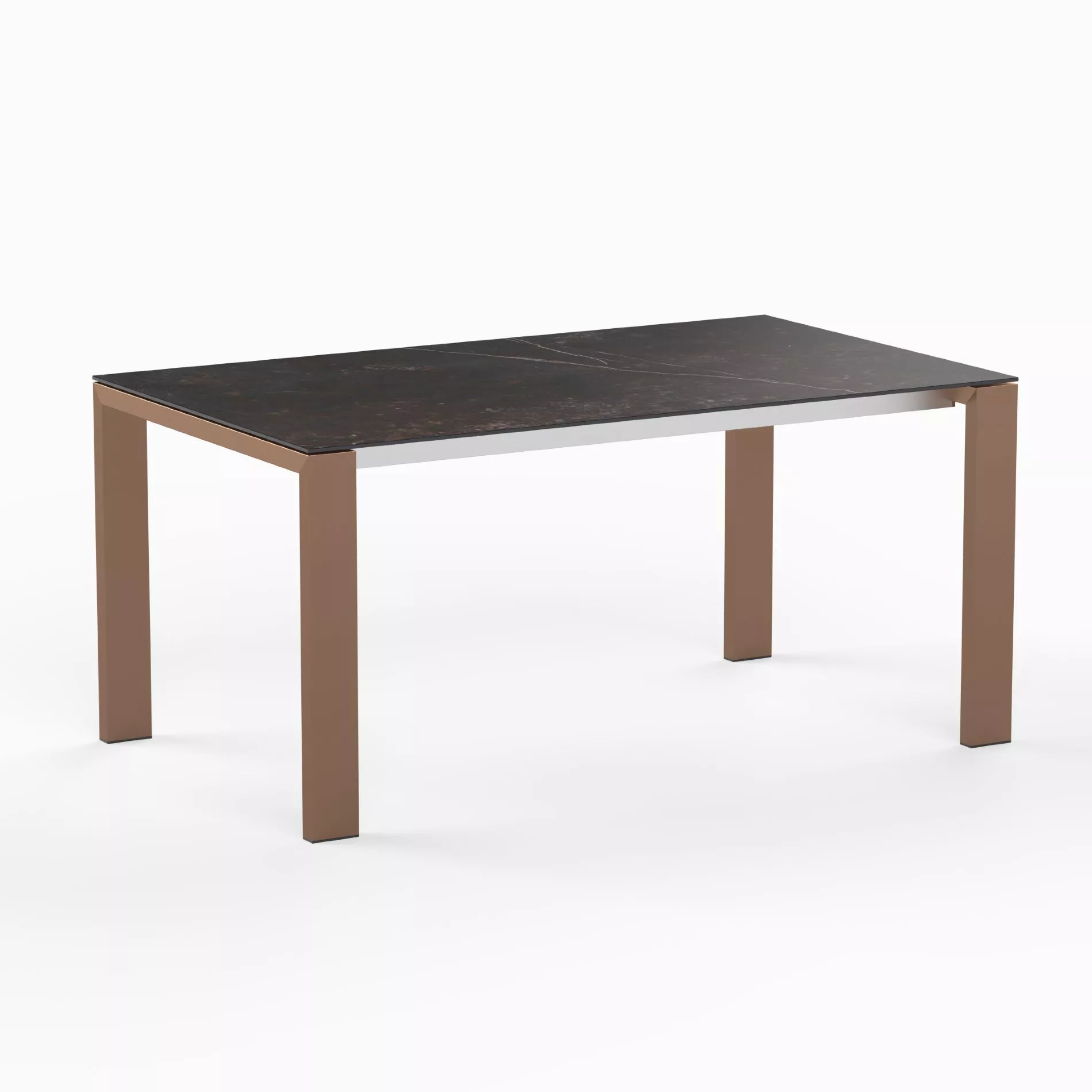 Die Tischplatte von “Olympia Oslo Cobre” ist aus Dekton gefertigt und in verschiedenen Dekoren erhältlich. Durch seinen speziellen Herstellungsprozess hat Dekton eine besonders dichte und nahezu porenfreie Oberfläche, in die keine Flüssigkeiten eindringen können. Dadurch ist die Tischplatte weitgehend fleckenfest und besonders leicht zu reinigen. Da das Material zudem abriebfest ist, hält es auch starker Beanspruchung problemlos stand.