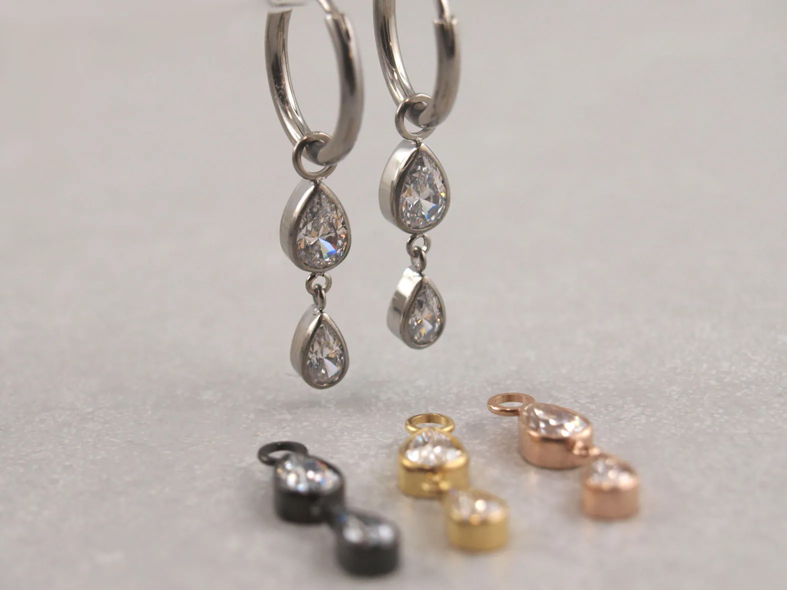 Produktinformationen zu den Titan Creolen mit Kristalltropfen: