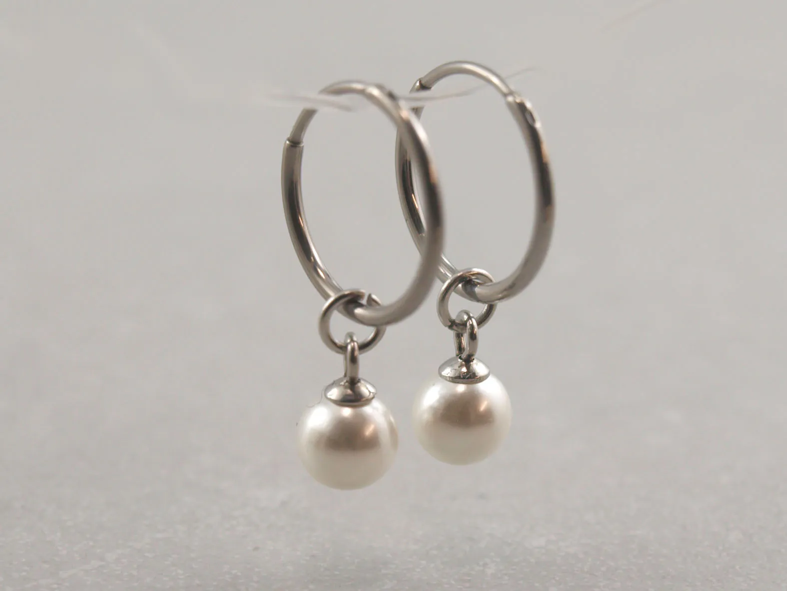 Creolen mit Perle aus Titan, für Allergiker geeignet