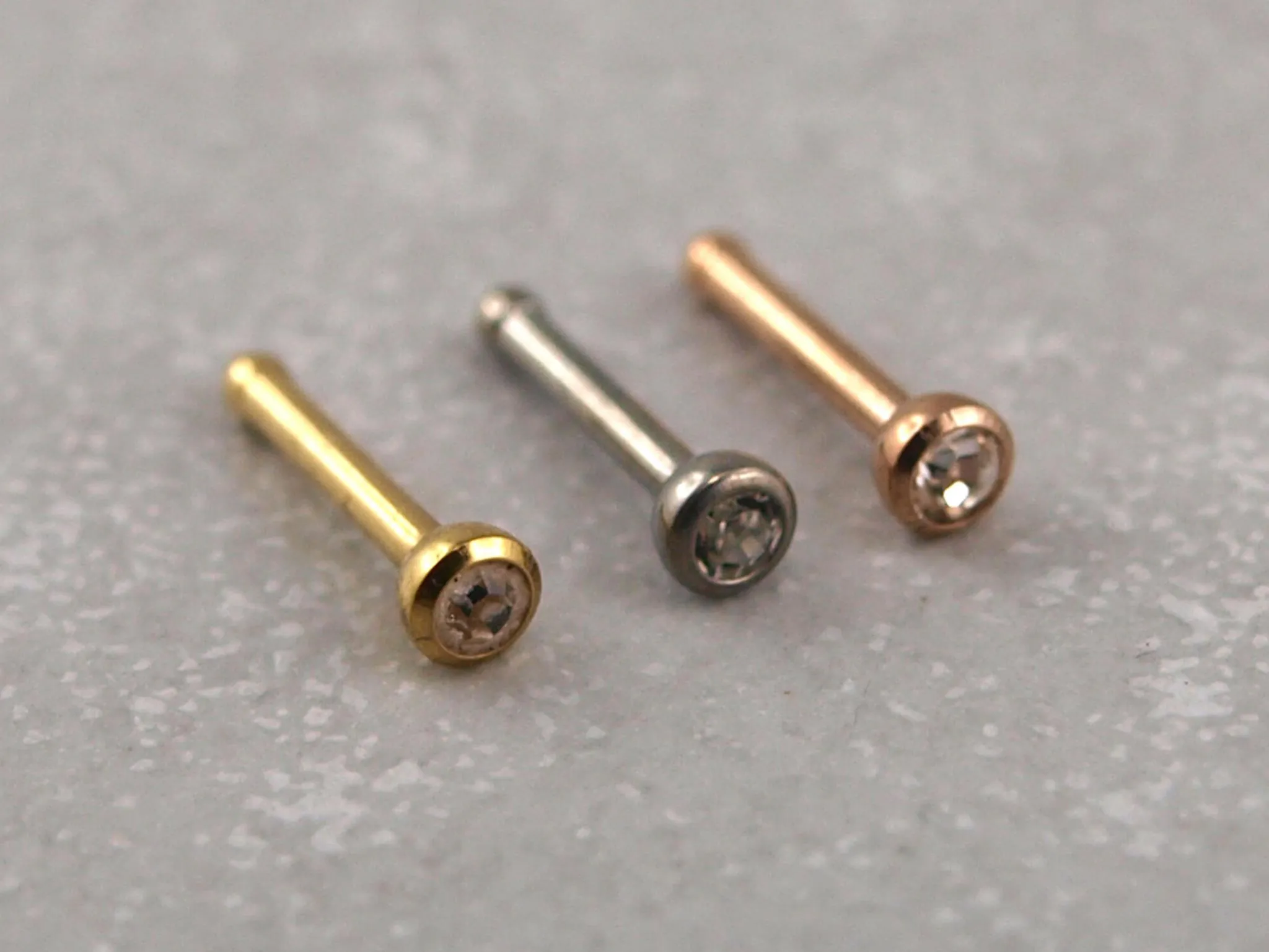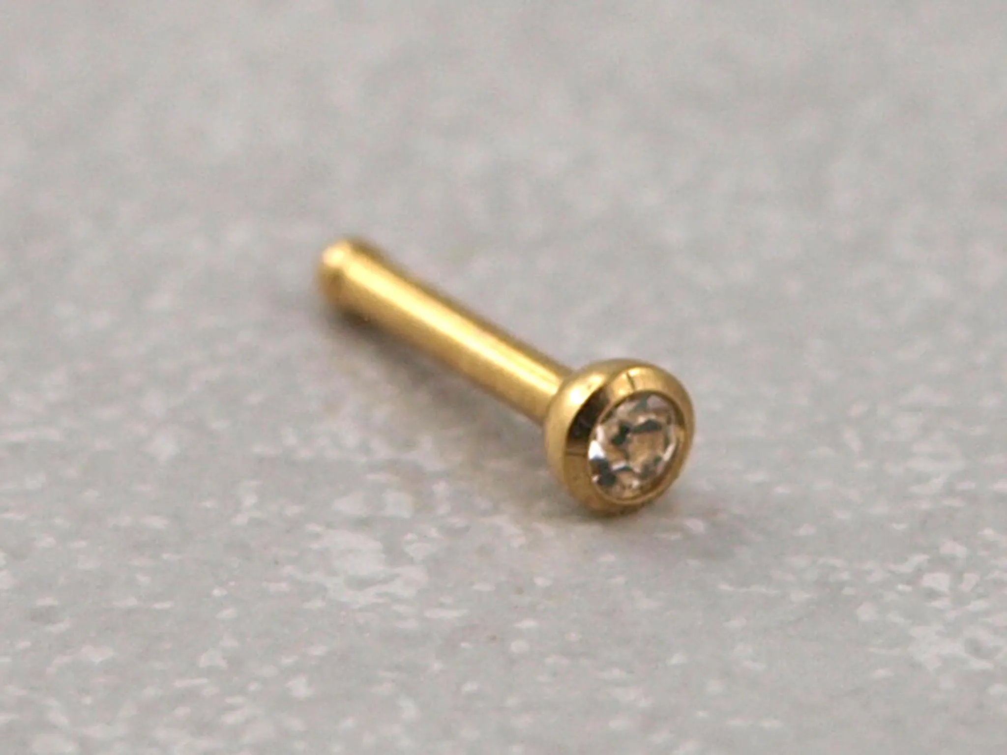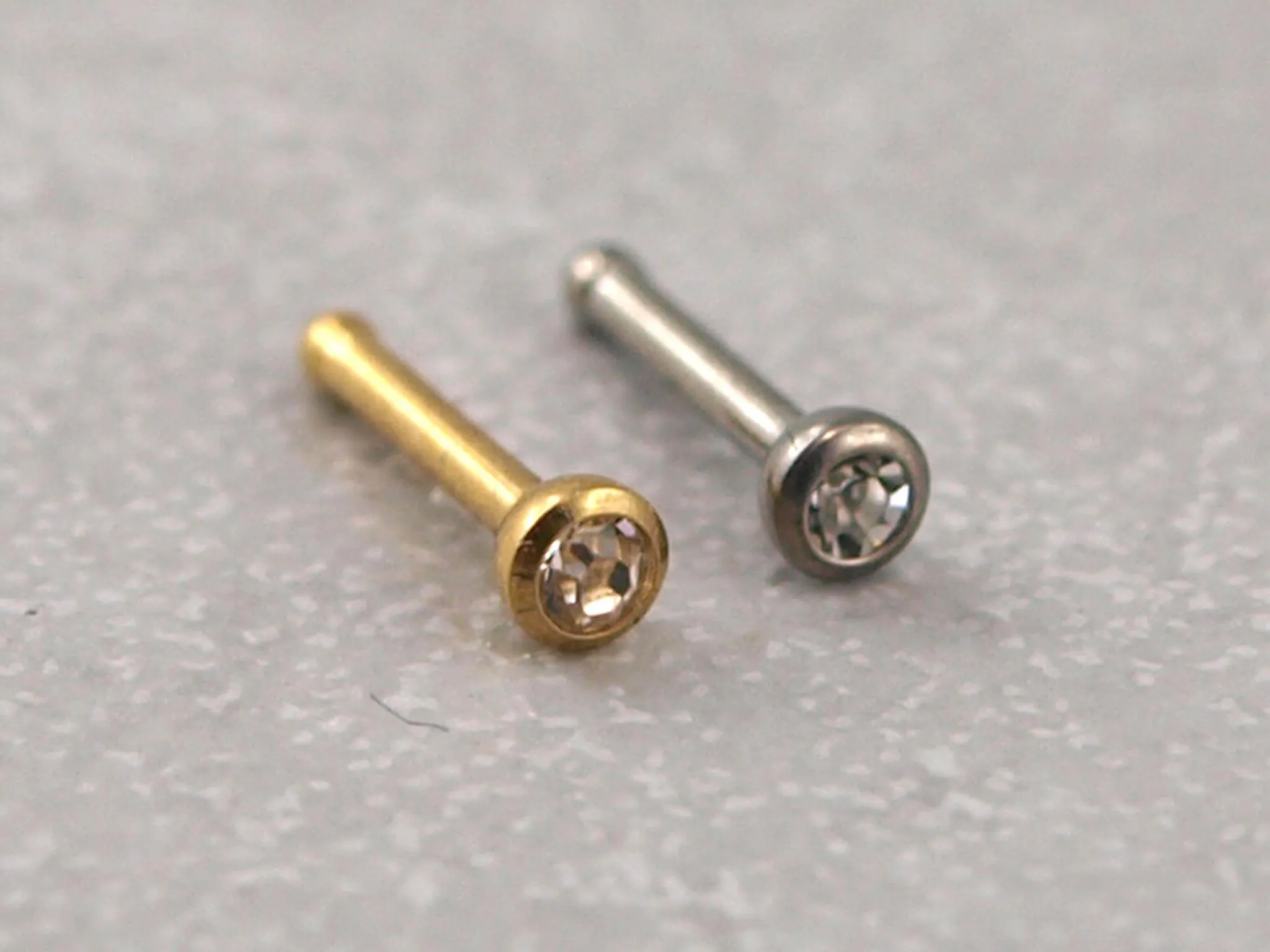 Dieser schlichte, kleine Nasenstecker wurde aus Titan gefertigt und ist somit gut verträglich, auch für Allergikerinnen. Ein guter Halt in der Nase wird durch die kleine Kugel am Ende des Pins gewährleistet. Als besonderes Highlight ziert das Schmuckstück ein funkelnder Kristall. Das Nasen Piercing verfügt über eine Stabstärke von 1 mm und eine Stablänge von 6 mm. Erhältlich ist das Schmuckstück in den Farben Silber, Roségold und Gold.