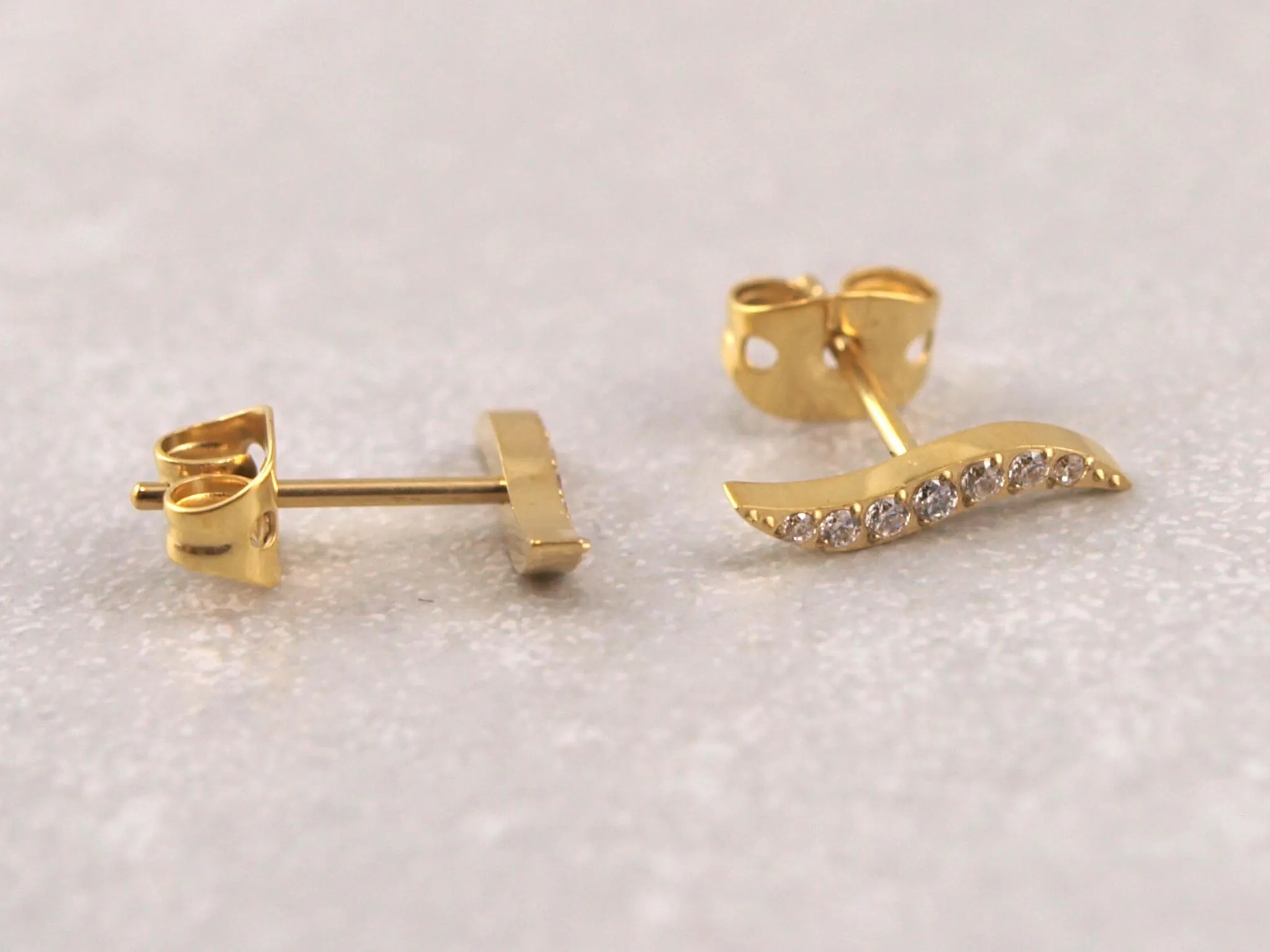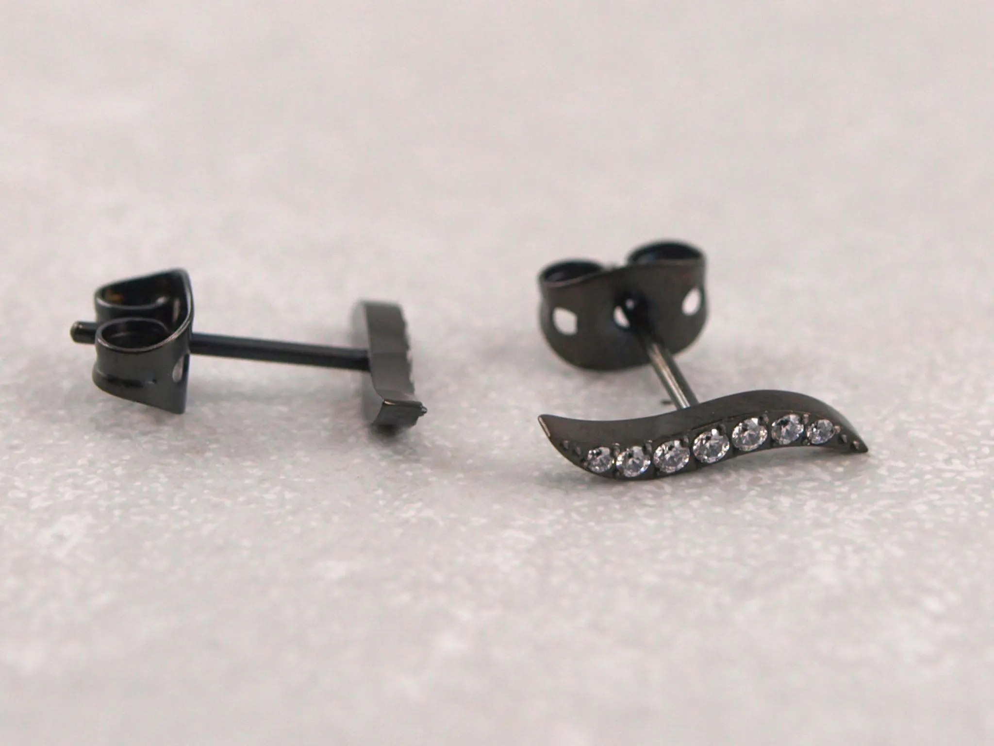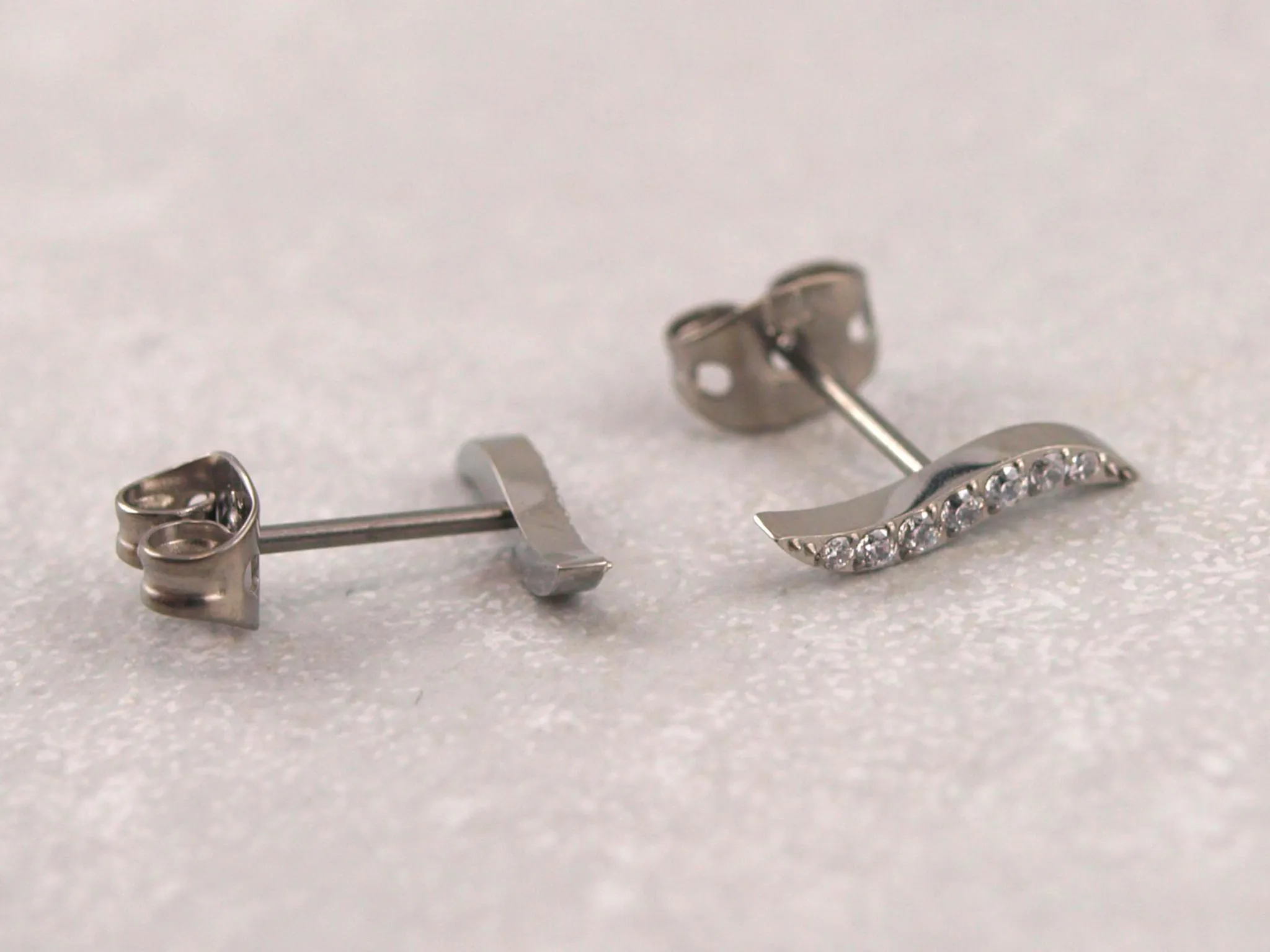 Welle aus Titan als Ohrstecker mit funkelnden Kristallen in Silber, Gold, Roségold oder Schwarz