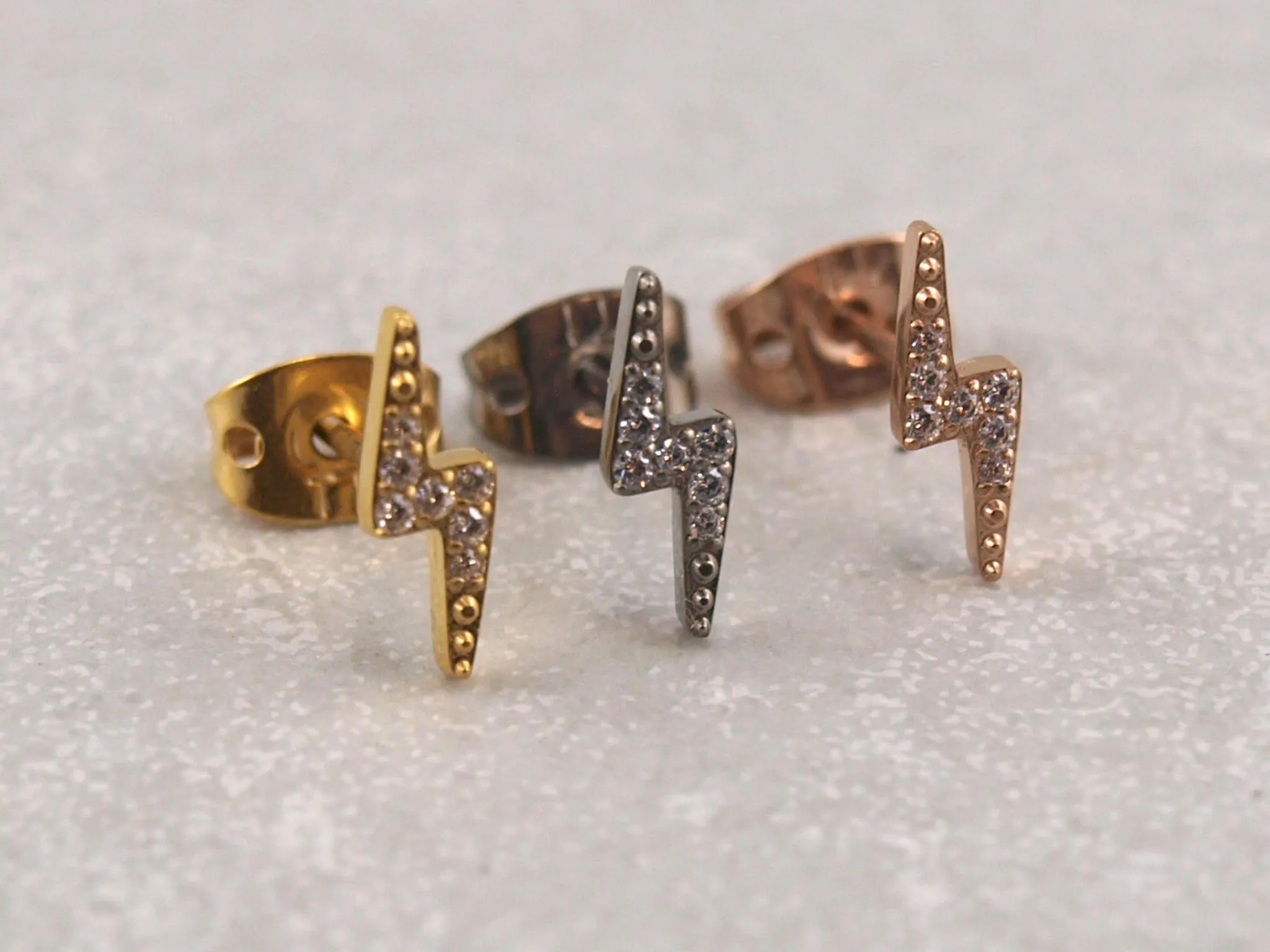 Blitz aus Titan als Ohrstecker mit funkelnden Kristallen in Silber, Gold oder Roségold