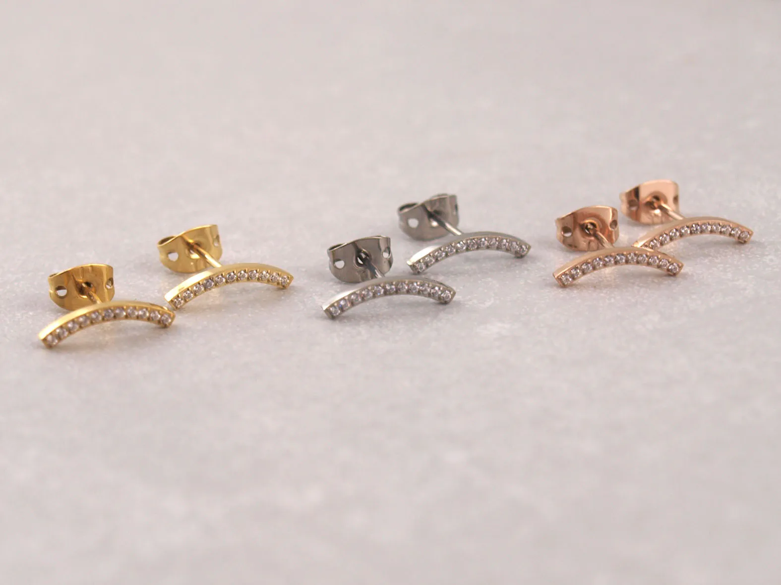 Titan Ohrringe Bogen mit Glitzersteinen, Allergiker geeignet