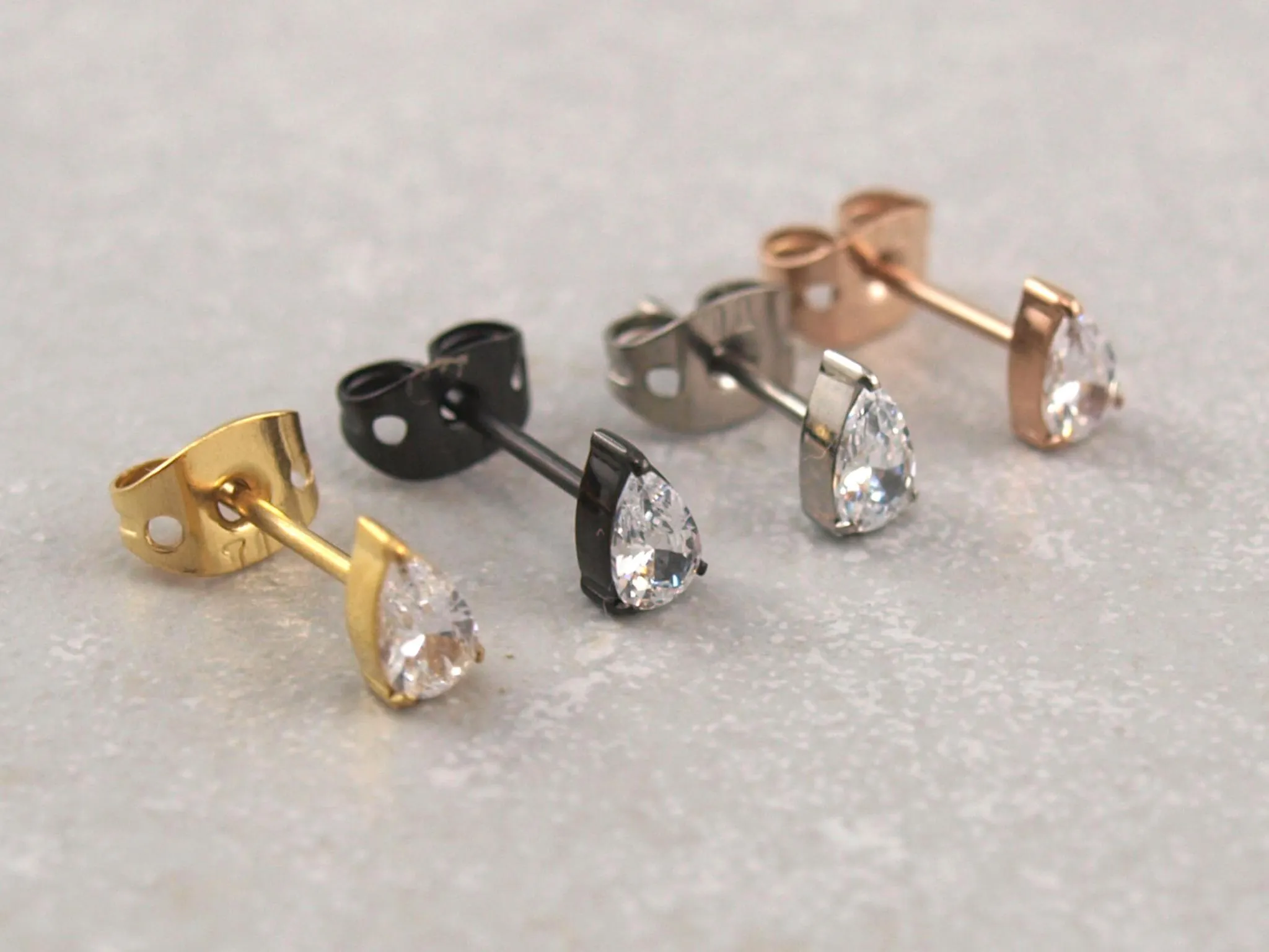 Dieses Paar Ohrstecker aus Titan mit Tropfen-Motiv sind aus Titan gefertigt und somit auch für empfindliche Ohren bestens geeignet. Die Ohrringe aus Titan sind in vier verschiedenen Farben erhältlich und werden durch einen Kristall aufgewertet. Die Tropfen Ohrringe aus Titan haben einen Durchmesser von etwa 6,5 mm x 8 mm.
