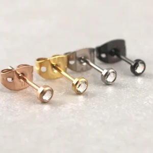 Titan Ohrringe Kronenfassung, Glitzer Ohrstecker
