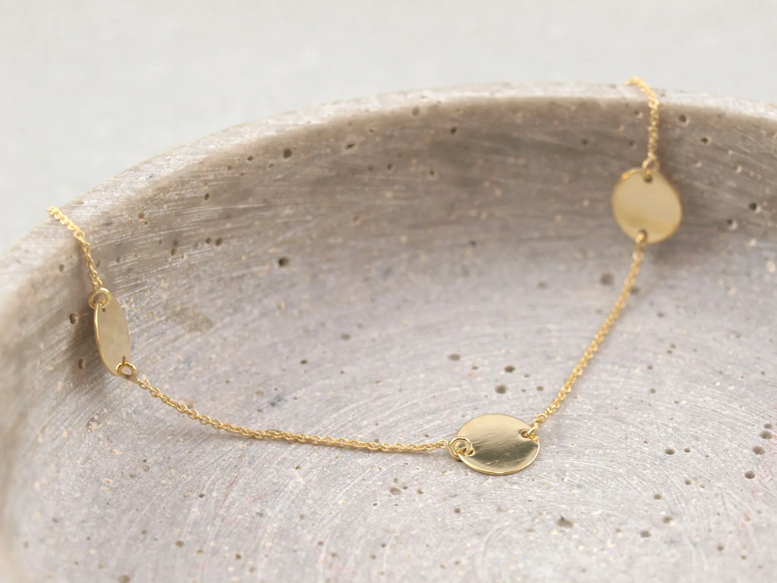 Familienarmband Gold mit drei Plättchen