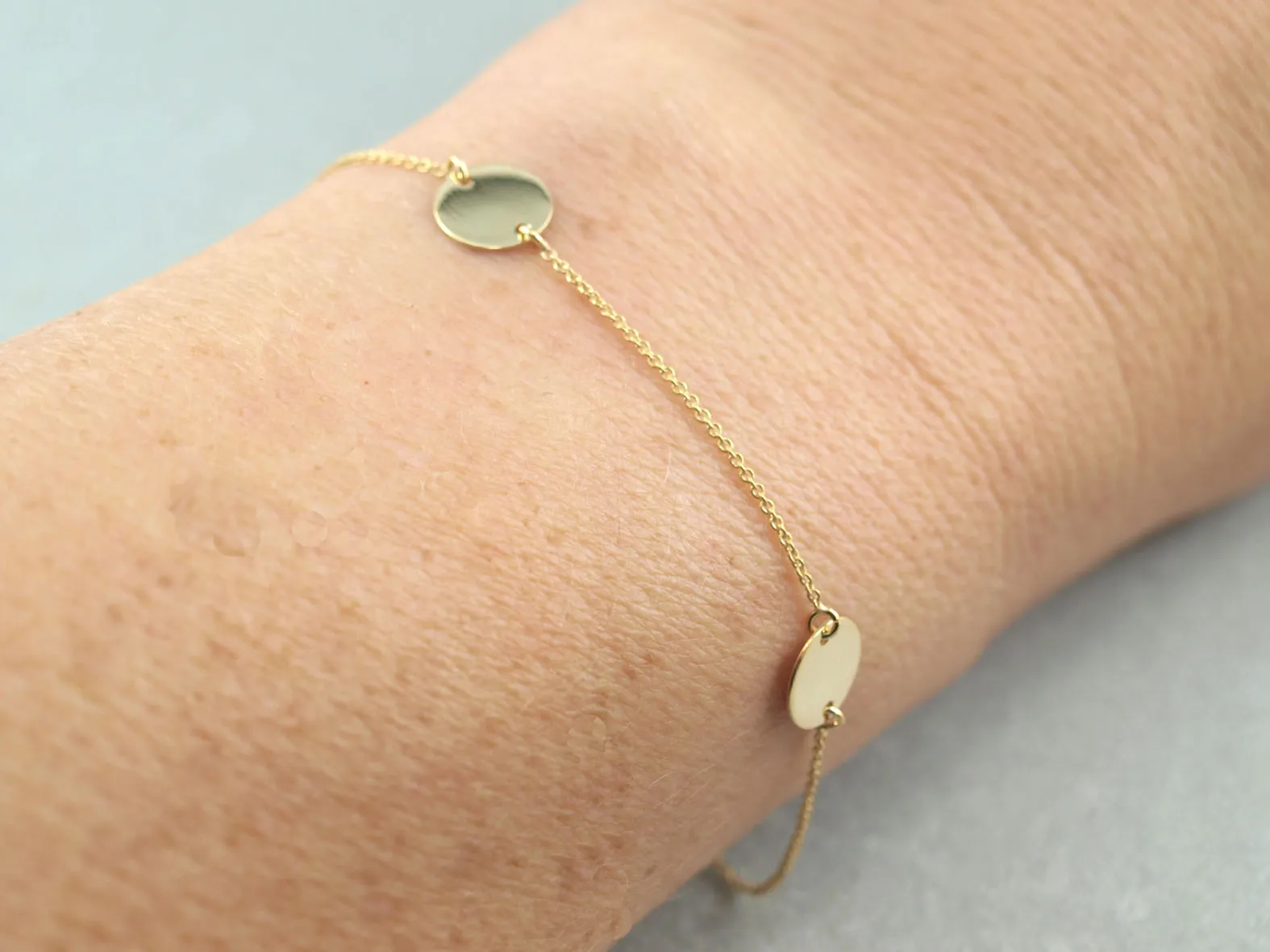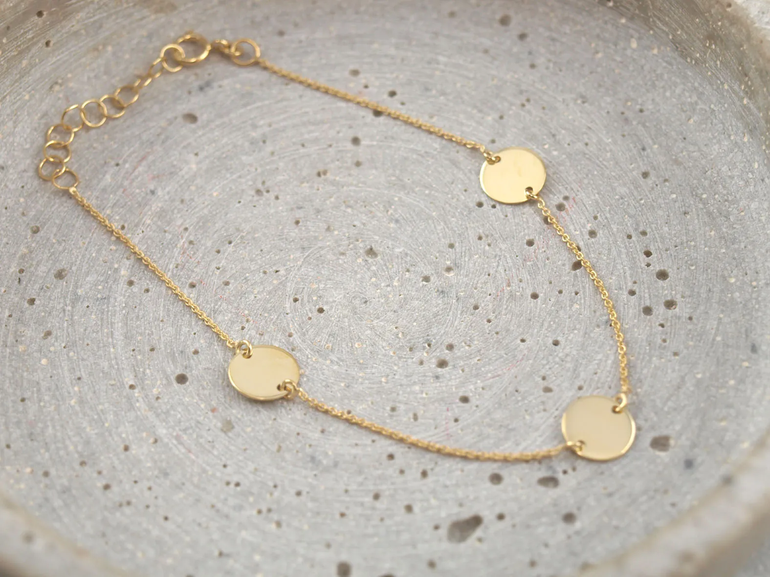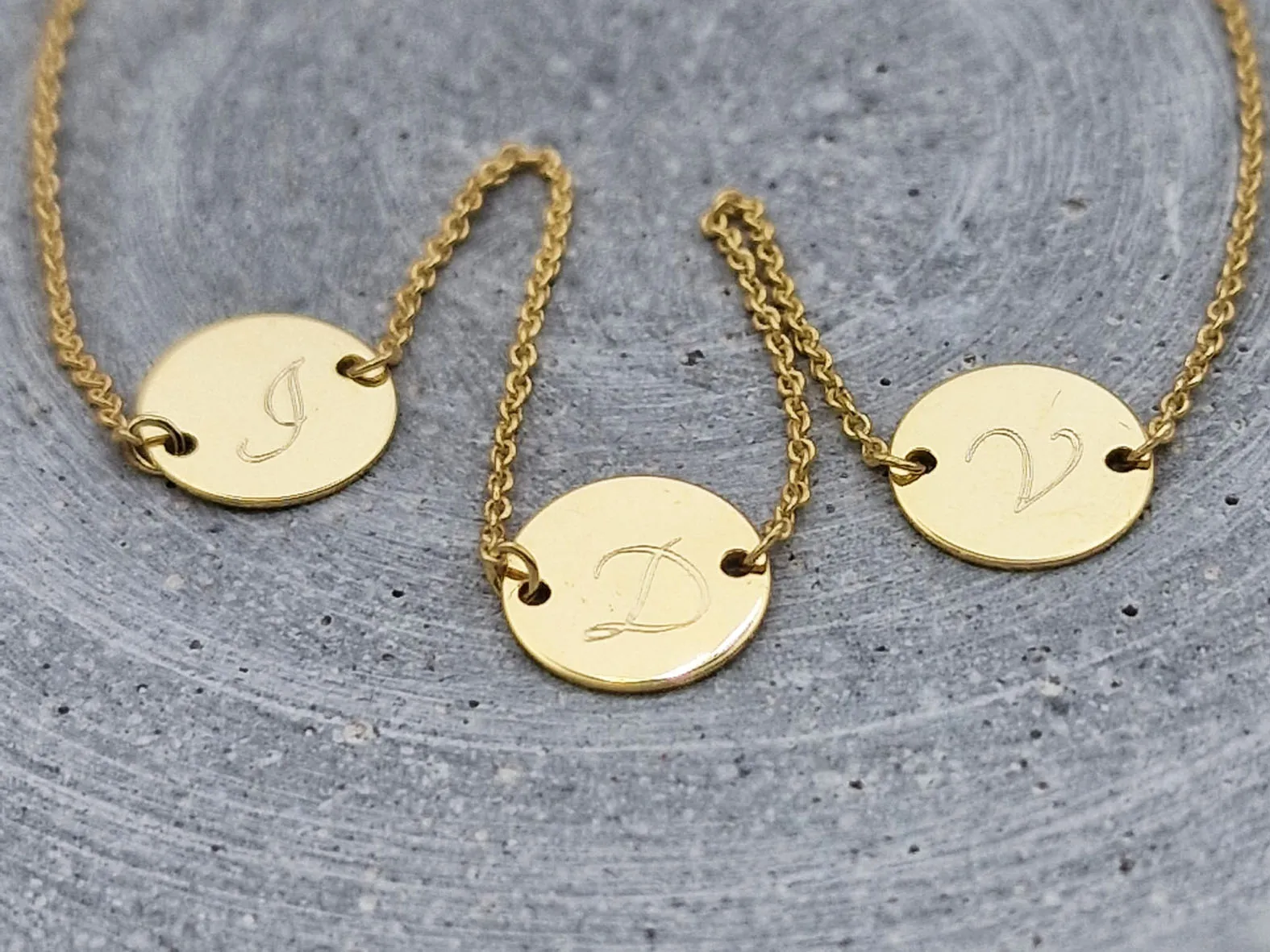 Armband Gold mit drei eingefassten Gravur Anhänger für Ihre individuelle Gravur