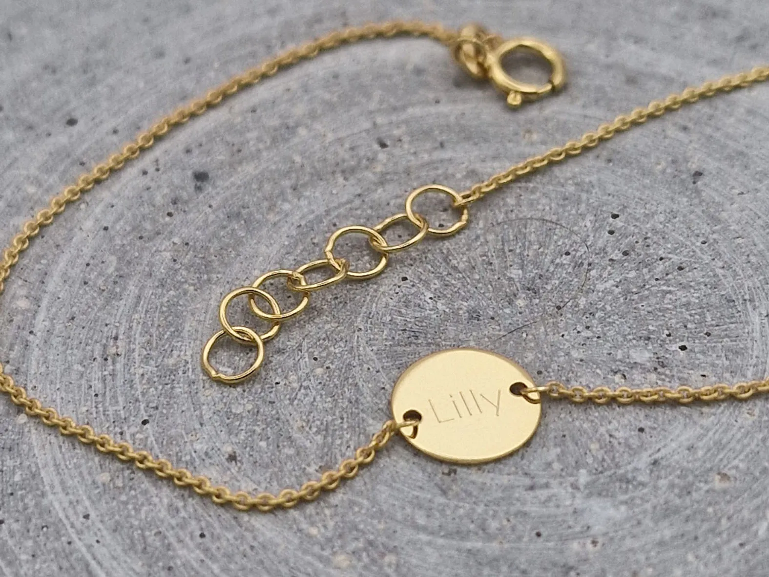 Armband Gold mit Gravur Anhänger für Ihre individuelle Gravur