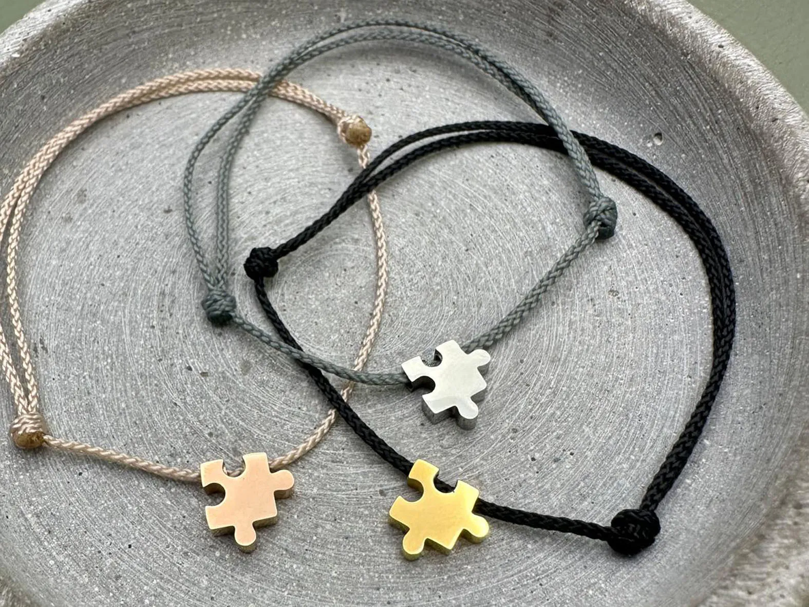 Armband mit Puzzle Perle, größenverstellbar mit Schiebeknoten