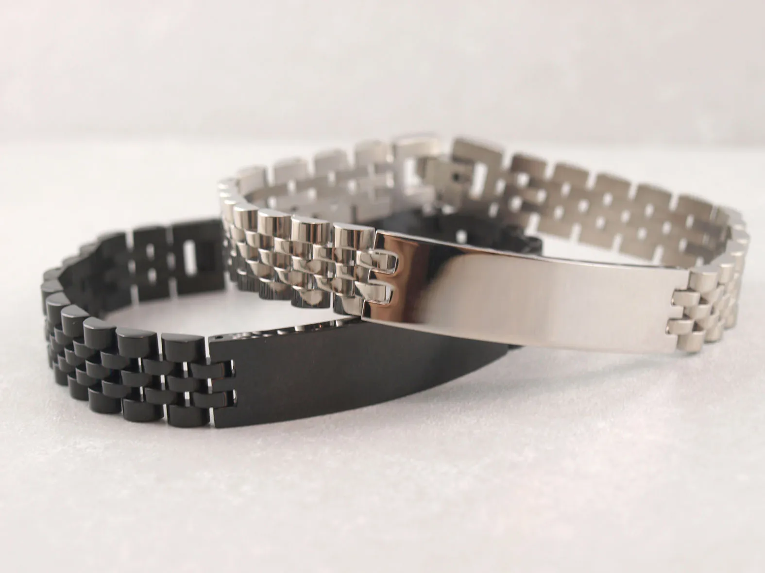 Dieses elegante Armband aus hochwertigem Edelstahl vereint Stil und Persönlichkeit. Wählen Sie eine individuelle Gravur für das ID-Schild – auf Wunsch auch in zwei Zeilen!