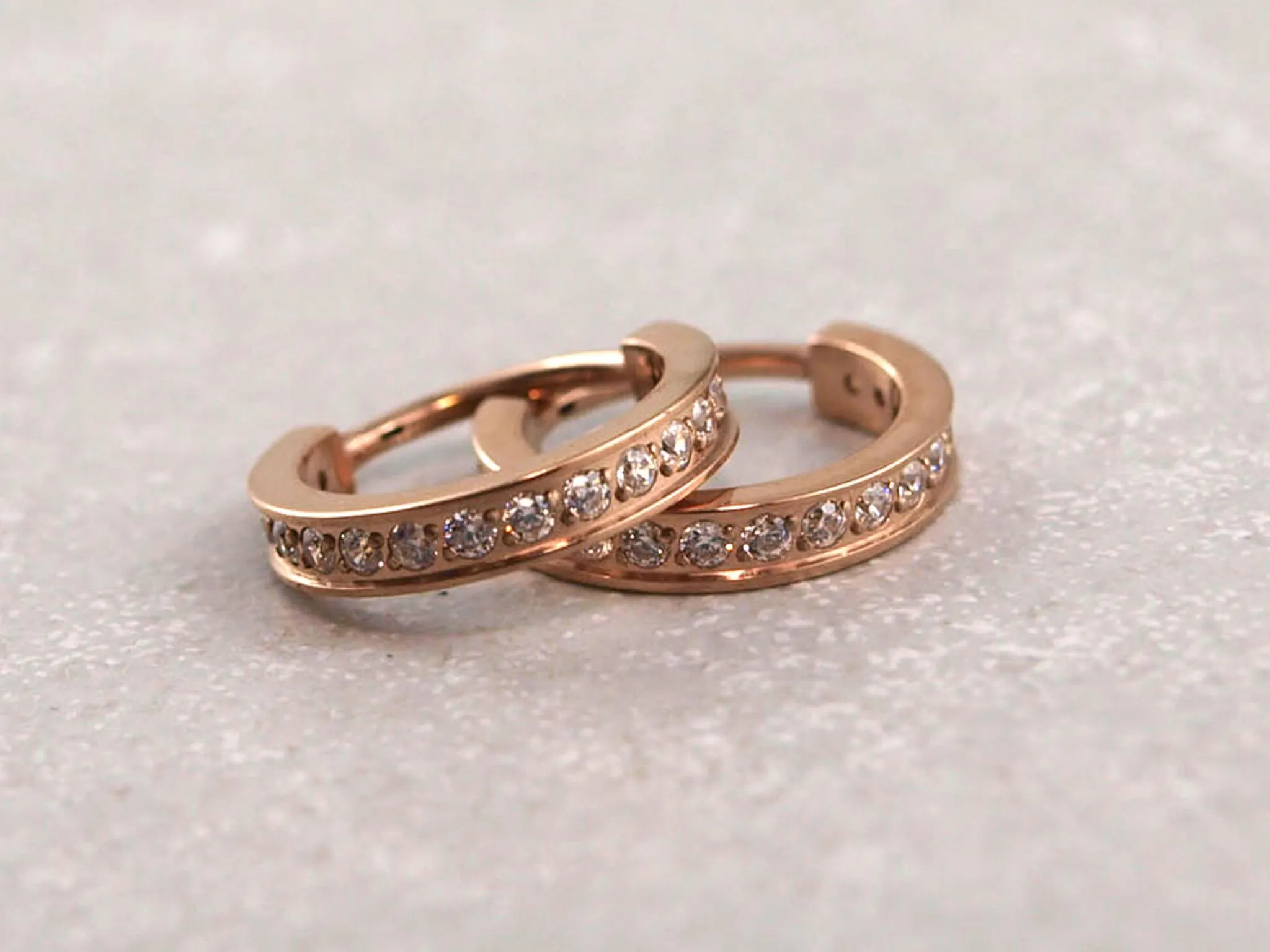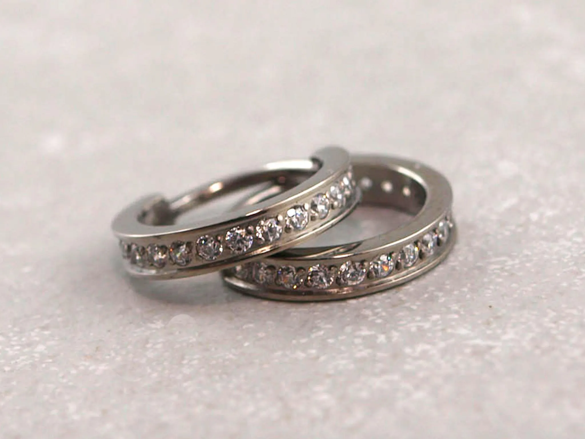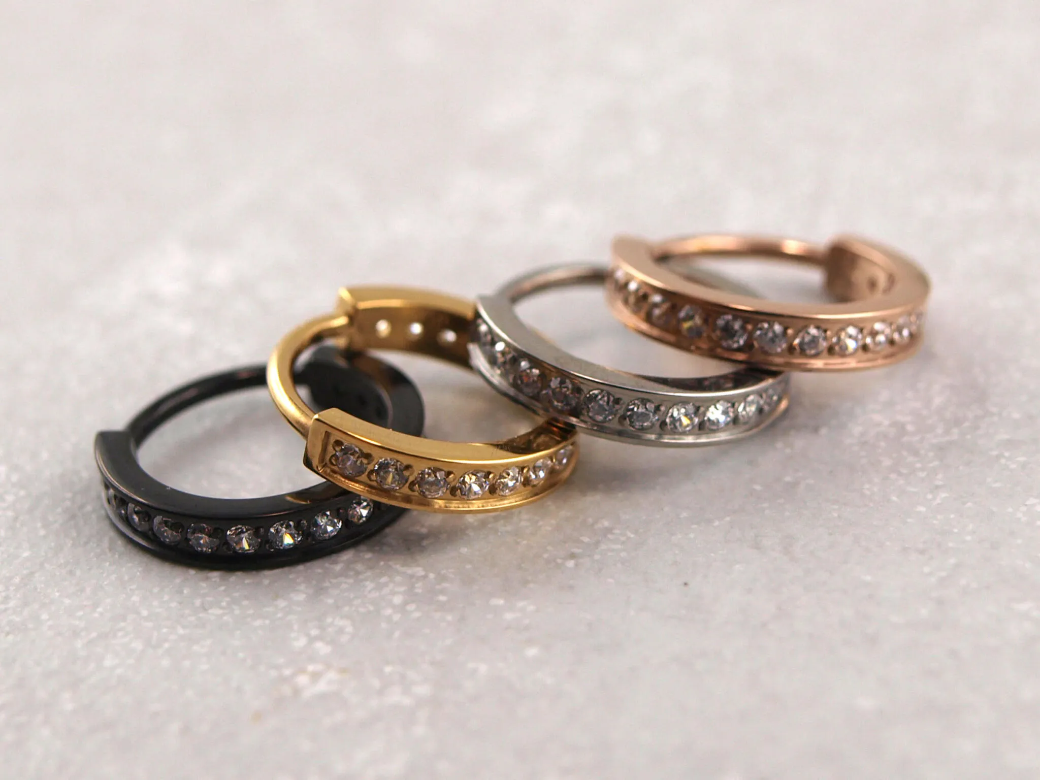 Die Kreolen aus Titan sind mit Kristallen besetzt und ein absolutes Must-Have! Zeitlos und modern funkeln sie an jedem Ohr. Durch ihr Material sind sie leichter am Ohr als andere Ohrringe und zudem sehr gut verträglich. Die Kreolen haben eine Breite von etwa 2,5 mm und sind zusätzlich in den Farben Silber, Roségold und Schwarz erhältlich.