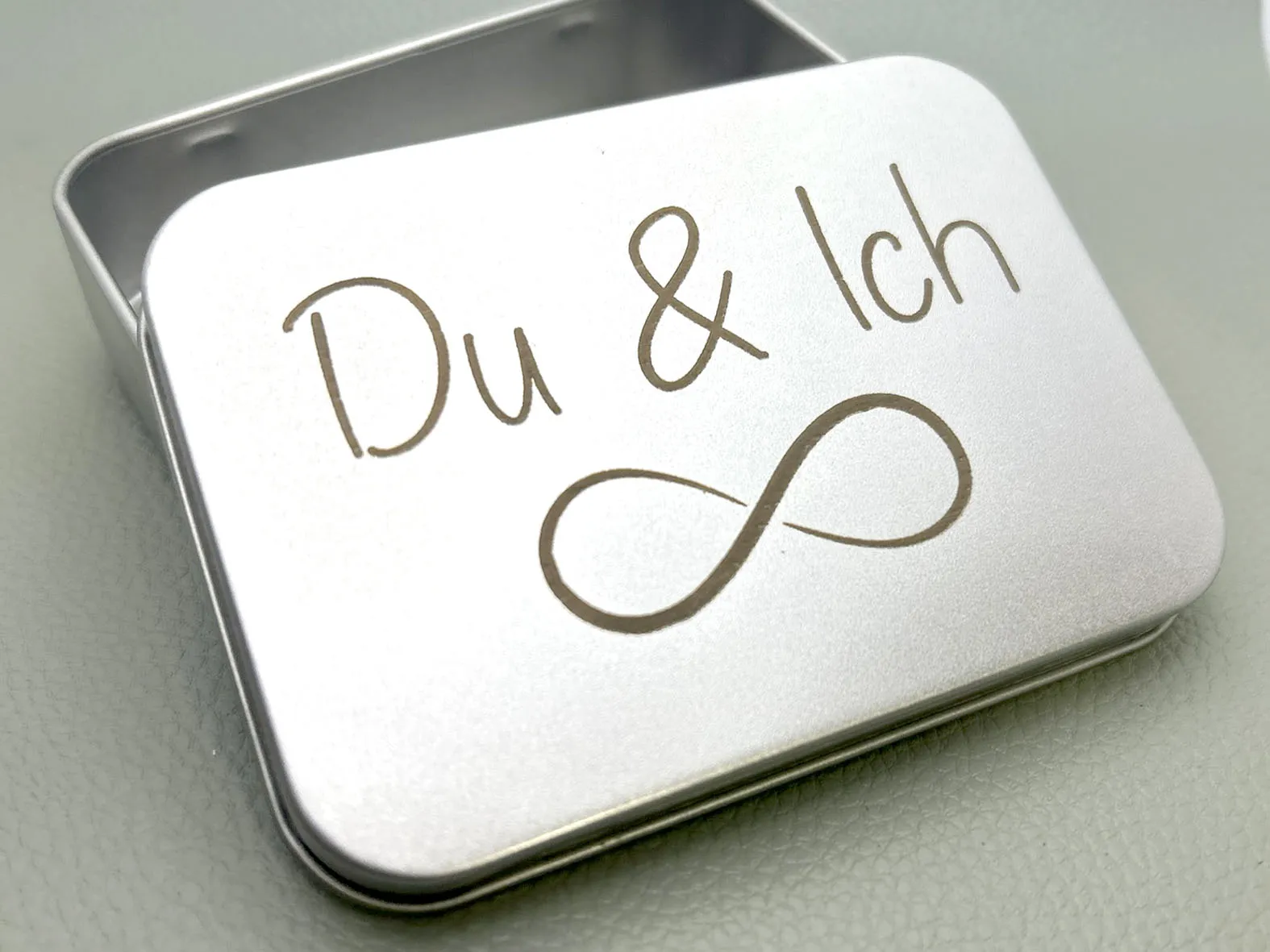 Silberne Geschenkdose mit Gravur “Du & Ich – Gravur”