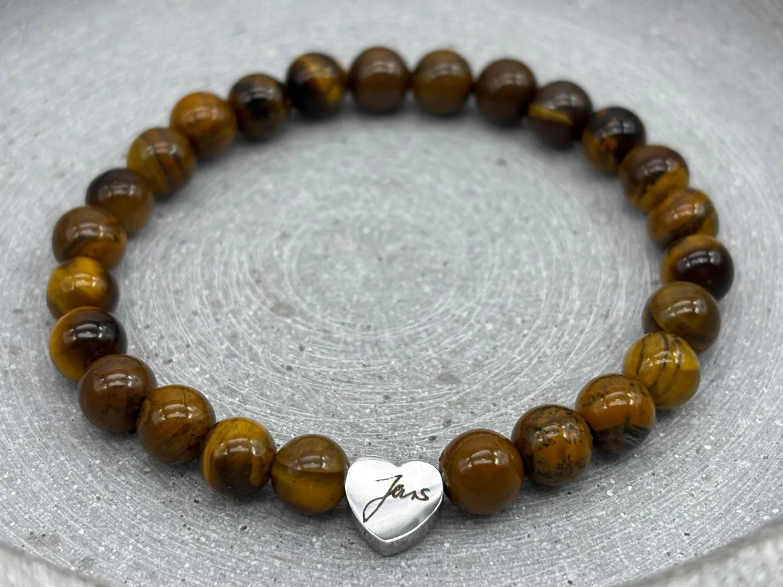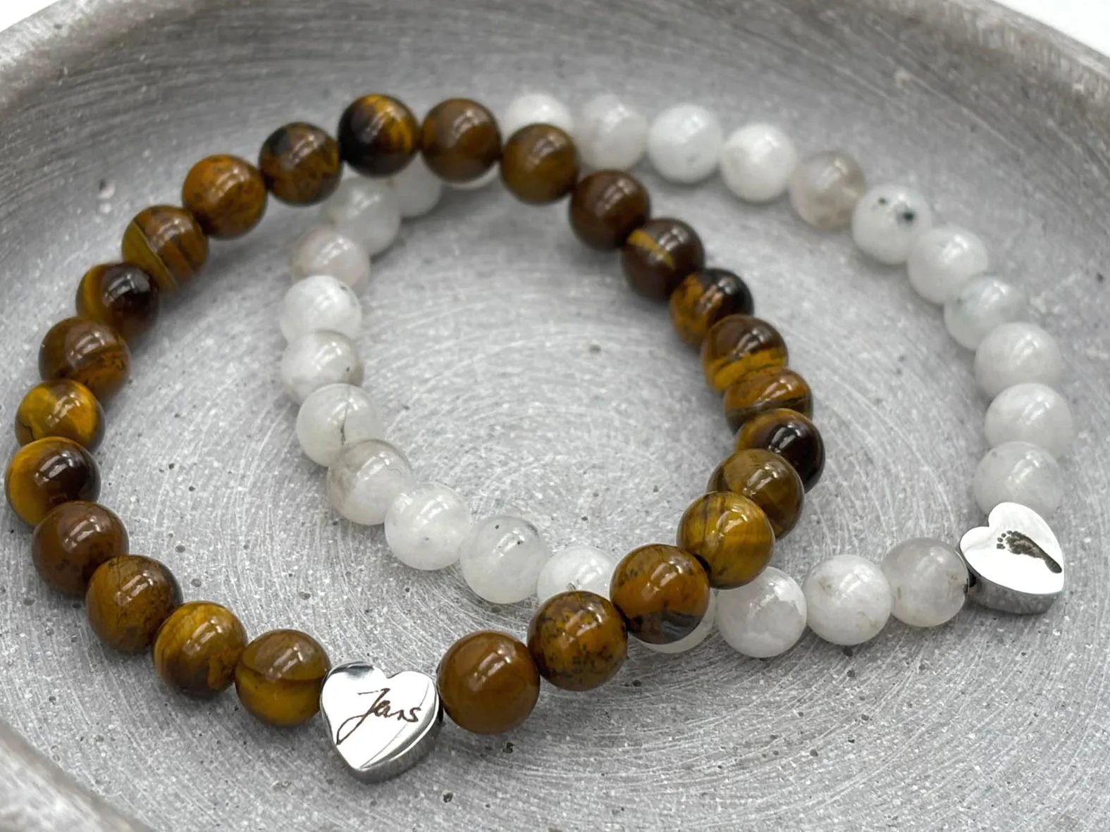 Dieses Armband aus echten Edelsteinen und kleiner Herzperle ist eine perfekte Geschenkidee für Ihren Lieblingsmensch. Die Perle kann auf der Vorder- und Rückseite graviert werden. So wird das Armband zu einem Unikat.