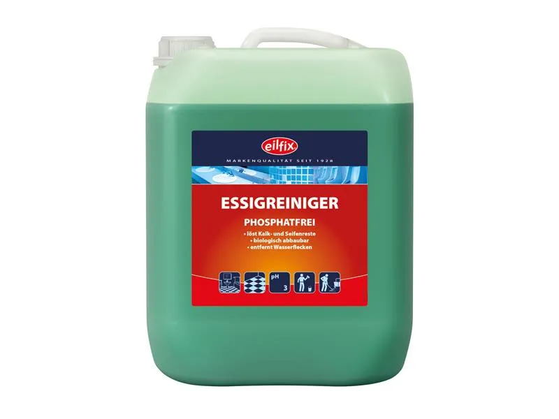 Eilfix Essigreiniger ist ein universell einsetzbares Produkt für den Sanitär-und Küchenbereich. Kalkreste, Seifenreste und Wasserflecken löst Eilfix Essigreiniger auf leichte Weise . Die verwendeten Tenside sind biologisch rasch abbaubar und daher umweltverträglich . Auf allen