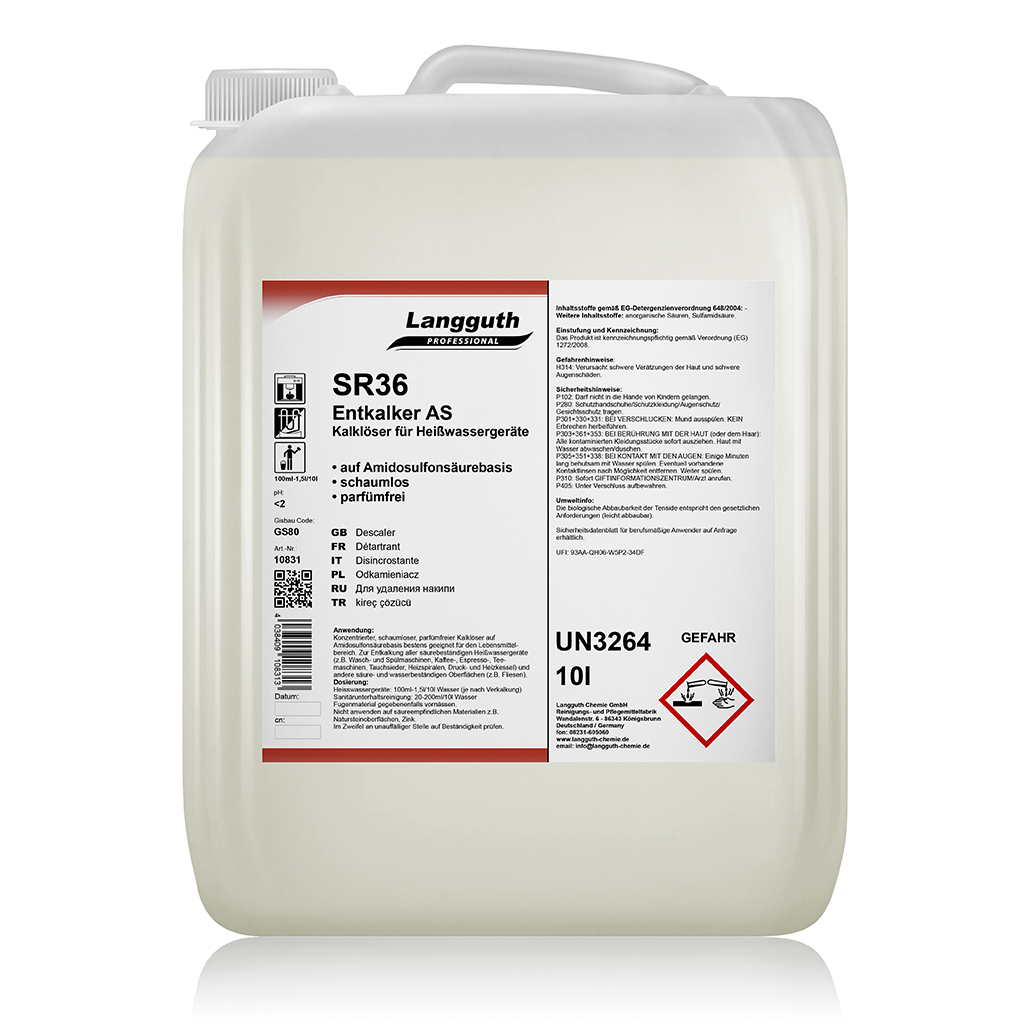 Konzentrierter, schaumloser, parfümfreier Kalklöser auf Amidosulfonsäurebasis bestens geeignet für den Lebensmittel-bereich. Zur Entkalkung aller säurebeständigen Heißwassergeräte (z.B. Wasch- und Spülmaschinen, Kaffee-, Espresso-, Tee-maschinen, Tauchsieder, Heizspiralen, Druck- und Heizkessel) und andere säure- und wasserbeständigen Oberflächen (z.B. Fliesen).