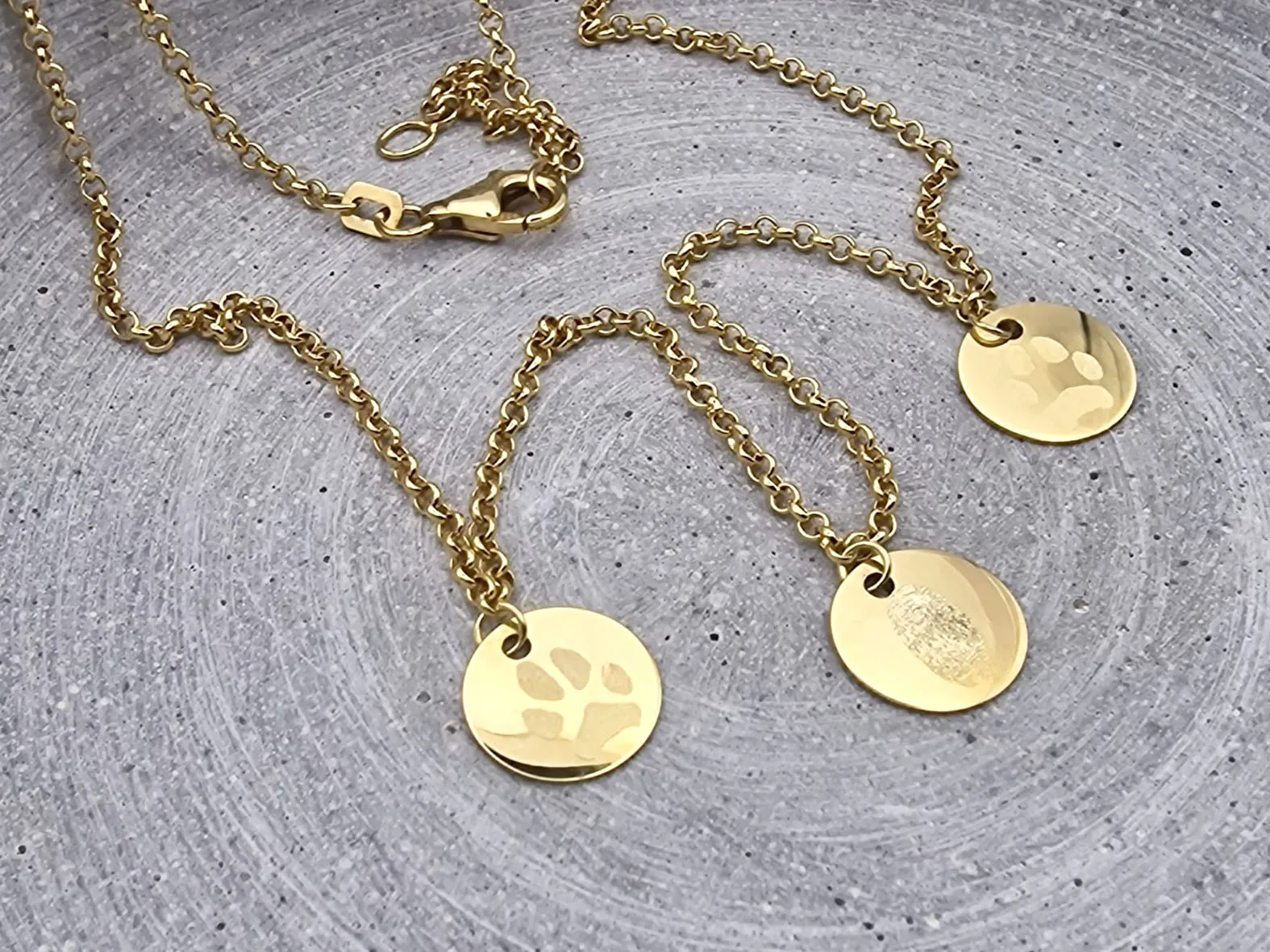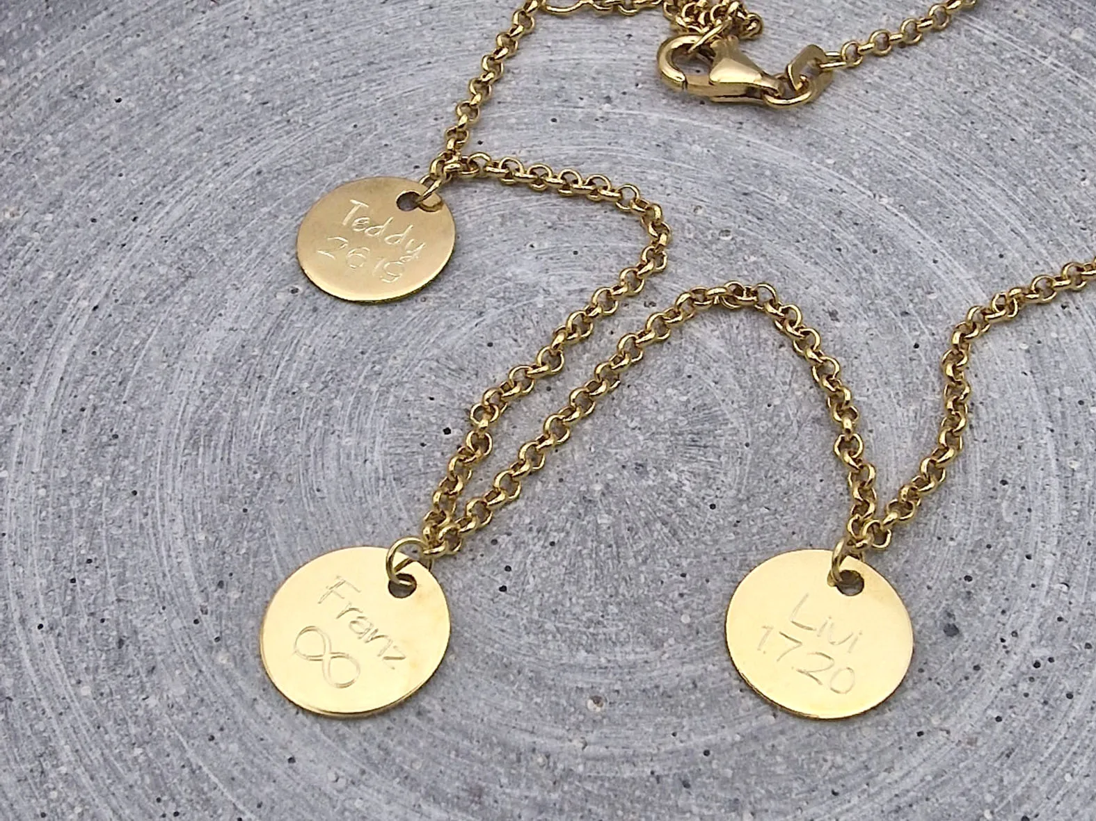 Produktdetails für die echt goldene Familienkette mit Gravur-Anhängern:
