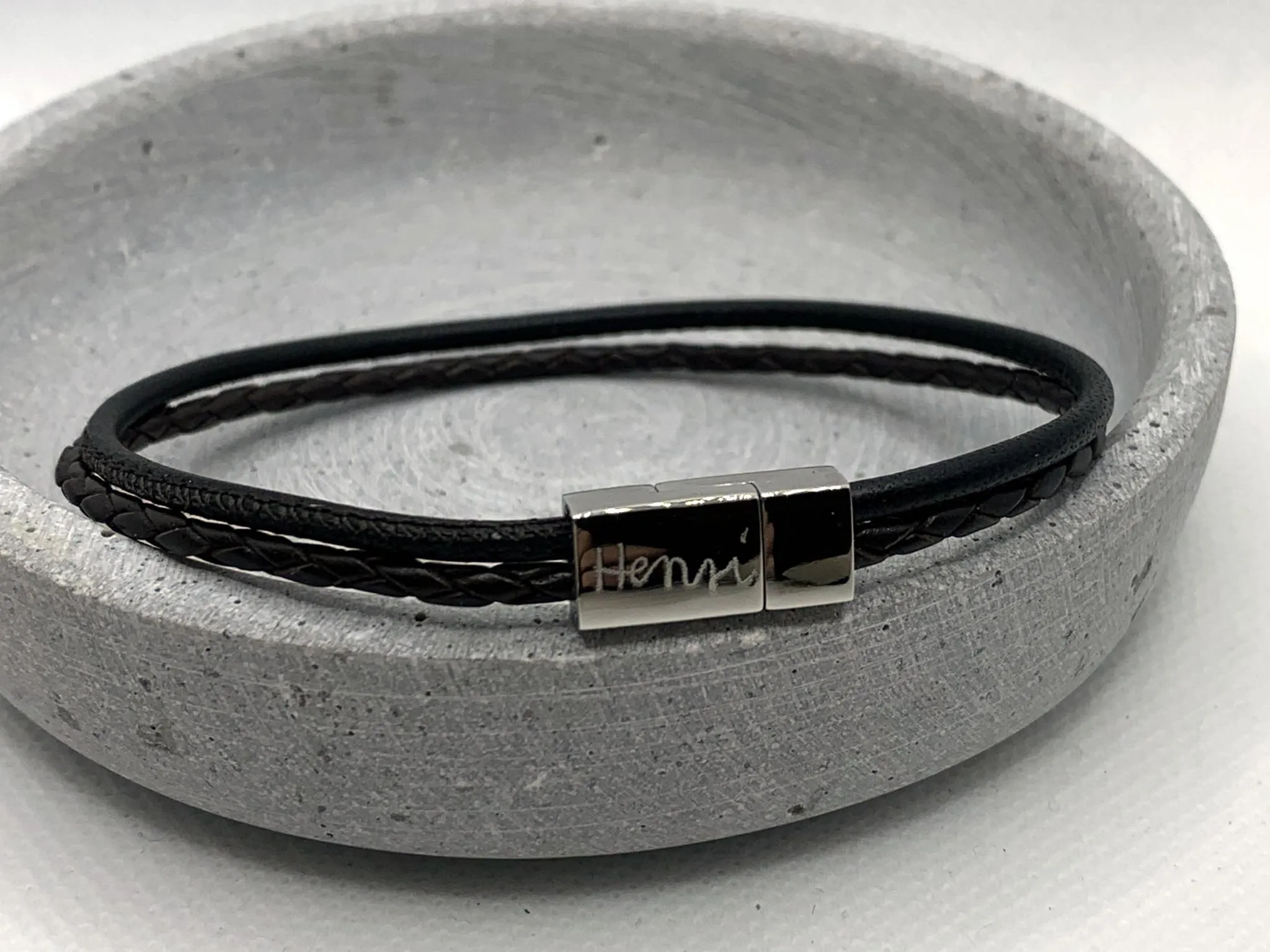 Wählen Sie Lederfarbe, Verschlussfarbe und Armbandlänge.