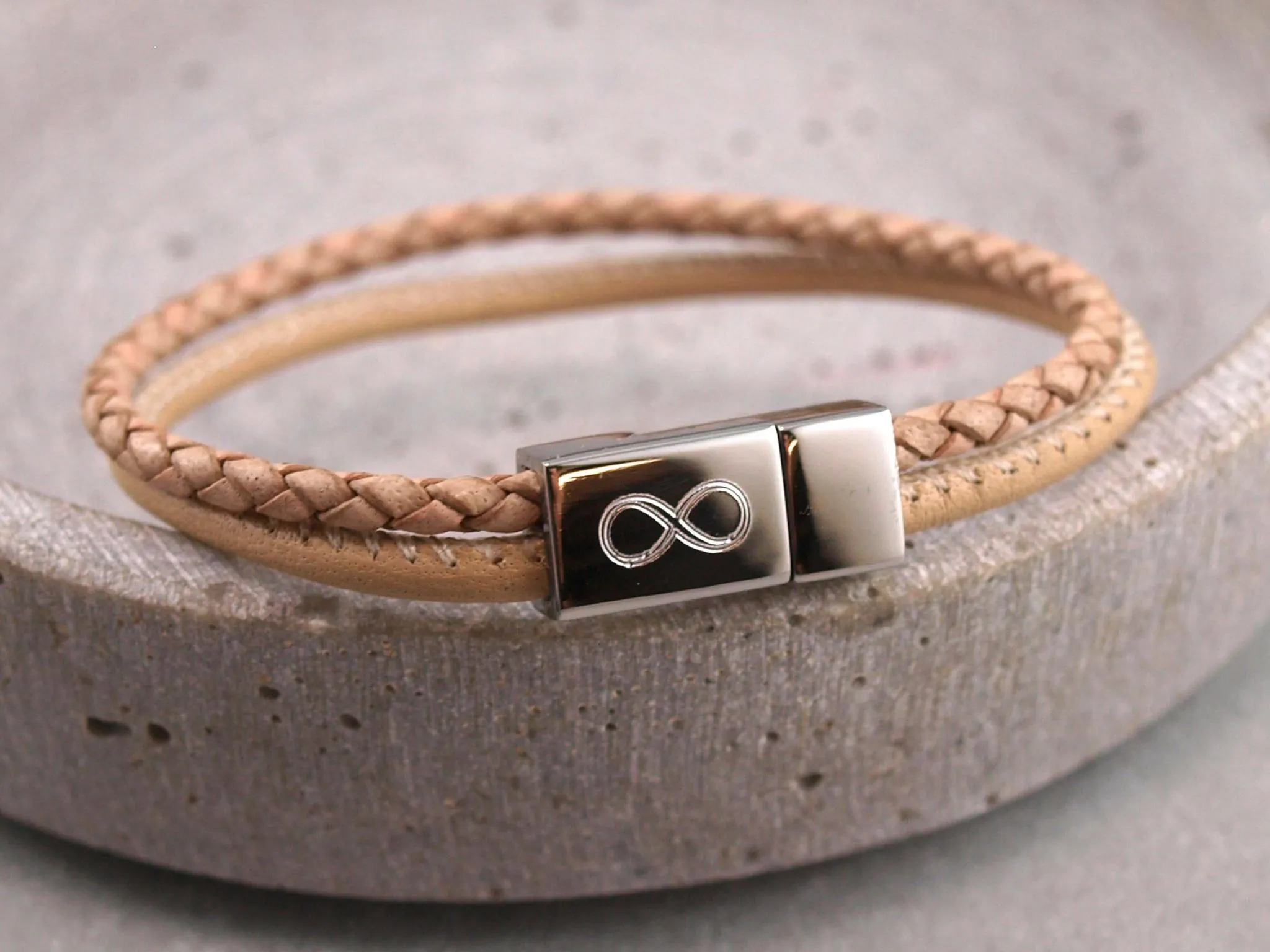Lederarmband Jona, einfach um das Handgelenk gewickelt.