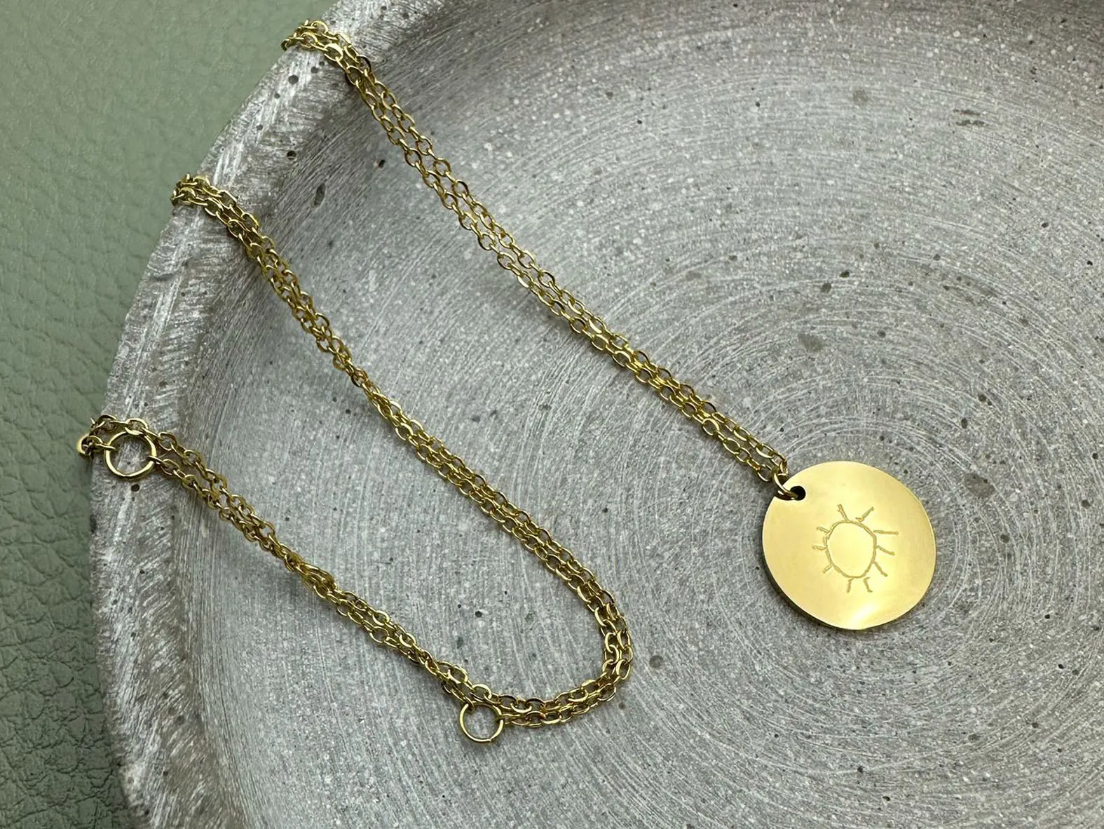Goldene Kette mit rundem Gravur Anhänger aus Chirurgenstahl, hypoallergen