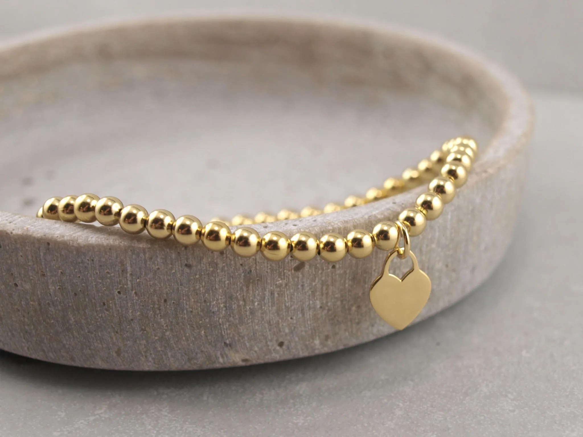 Goldenes Damen Armband aus Kugeln mit kleinem Herzanhänger aus echtem Silber, Gravur möglich