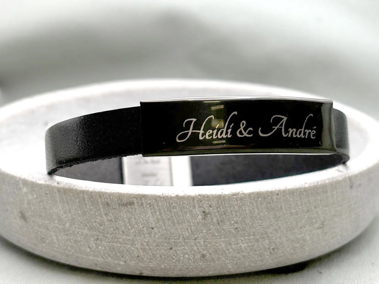 Das Lederarmband mit gravierbarem Schild ist das ideale Geschenk für den Partner – eine elegante und persönliche Geste, die verbindet.