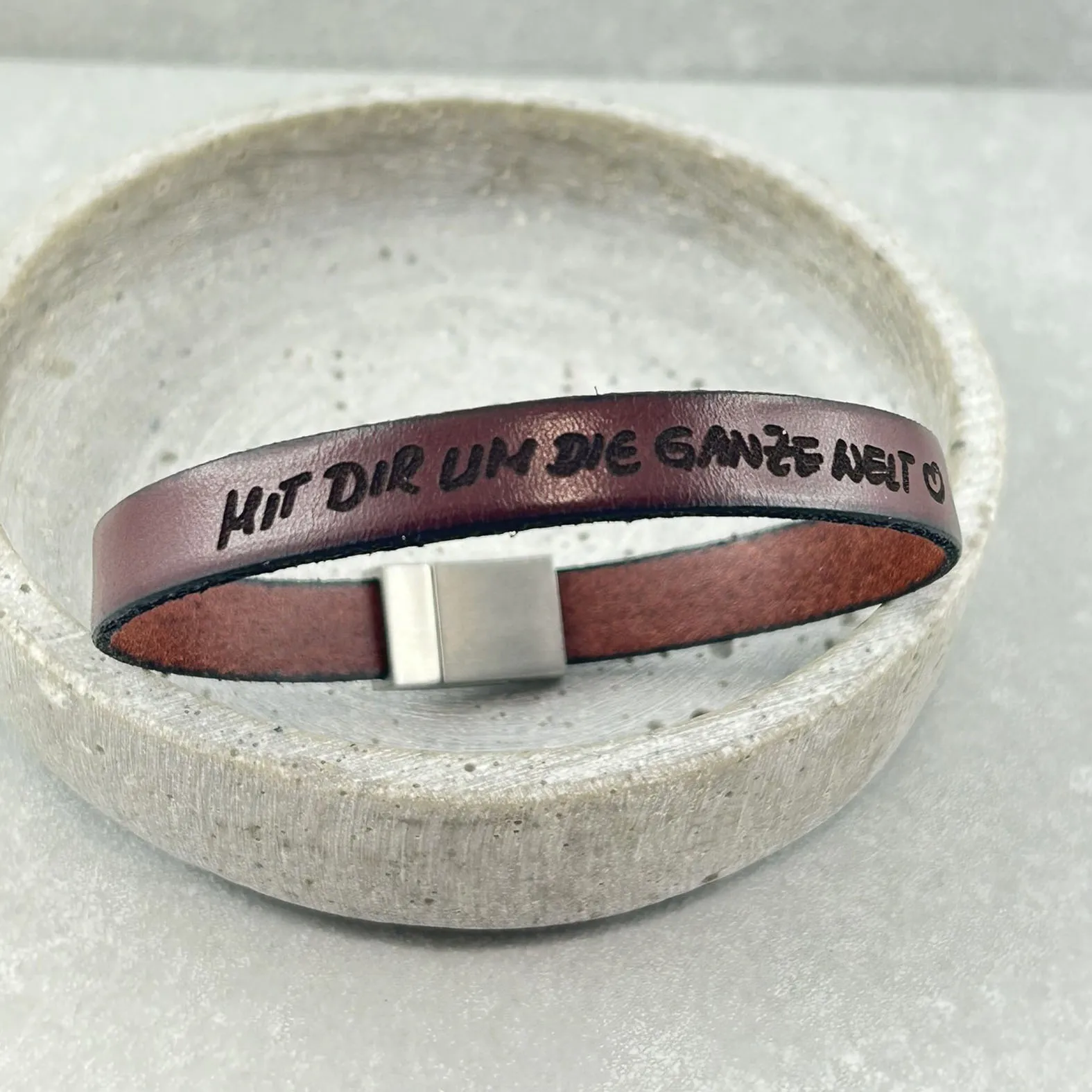 Personalisierbares Lederarmband Herren mit Gravur auf dem Verschluss und Wunschtext