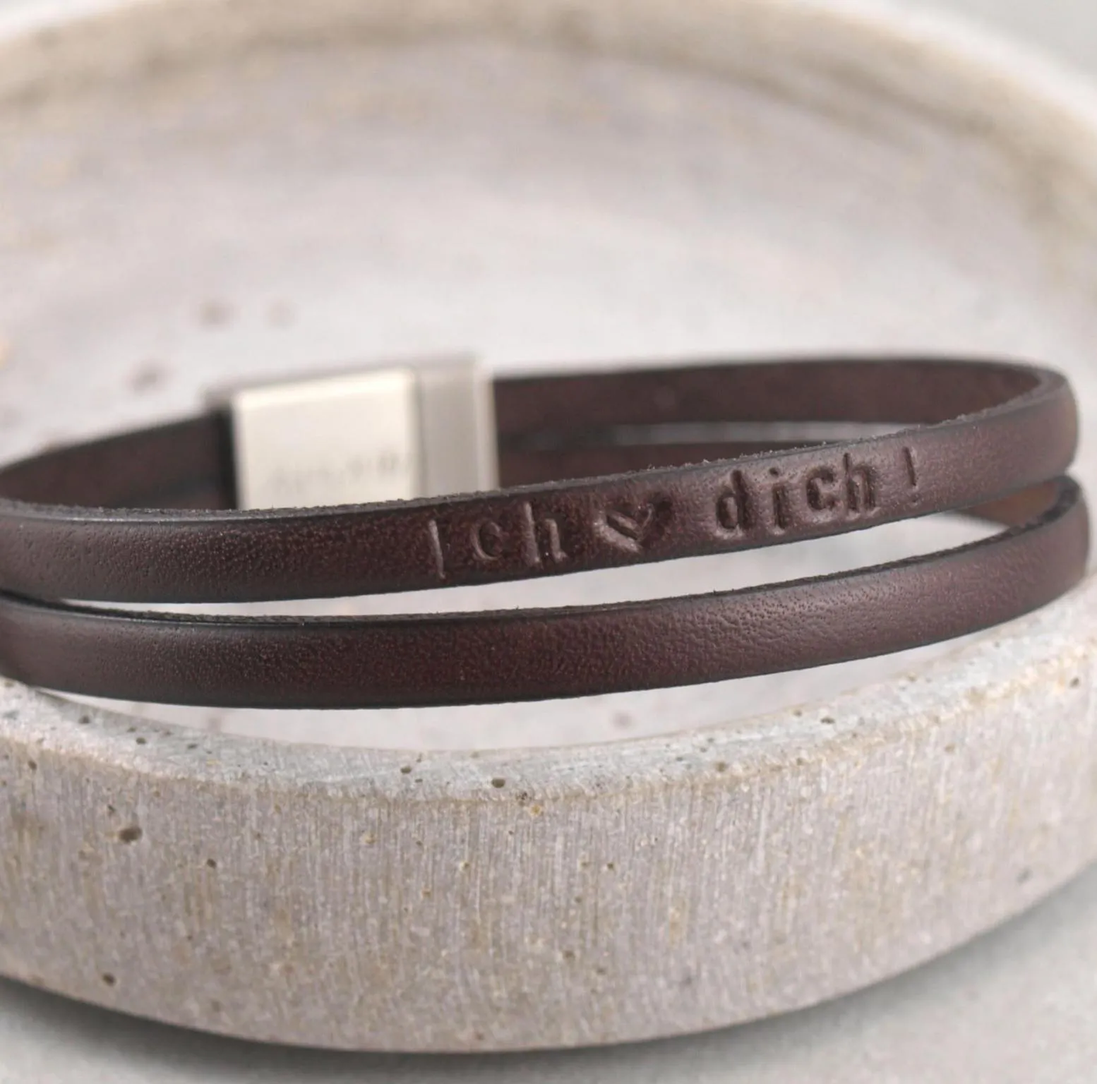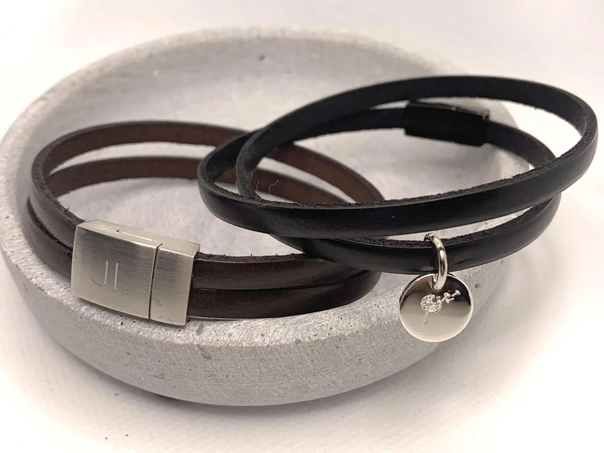 Freundschaftsbänder aus Leder mit Wunschtext und Gravur-Option, Gravuranhänger wählbar