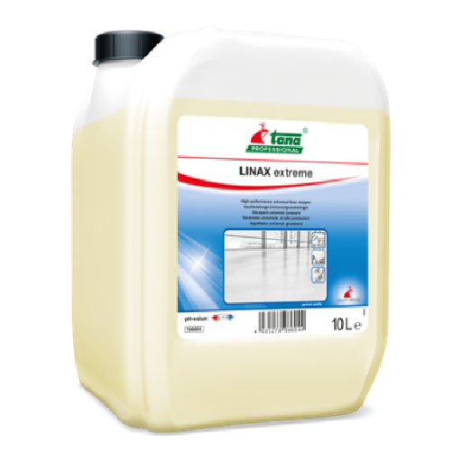 - LINAX extreme ist ein leistungsstarker Universal-Grundreiniger, der besonders für stark überpflegte Böden und hartnäckige Polymerschichten geeignet ist.