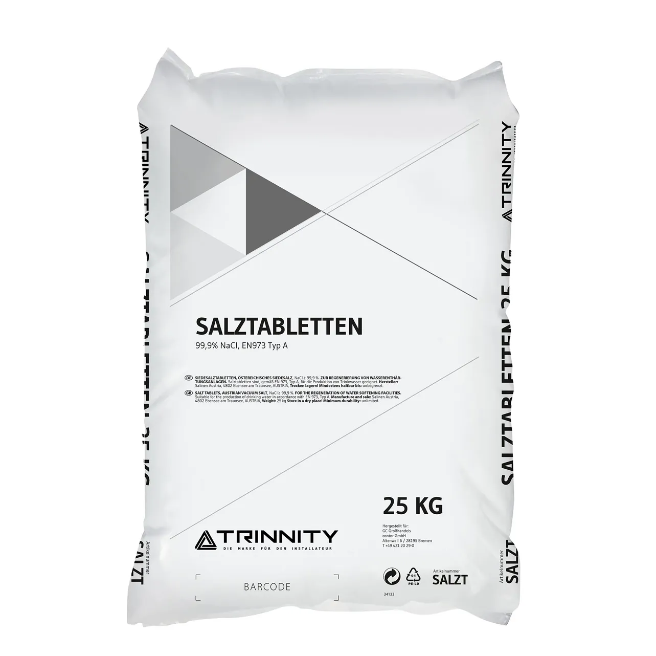Hochreines Siedesalz in Tablettenform zur Regeneration von Wasserenthärtungsanlagen