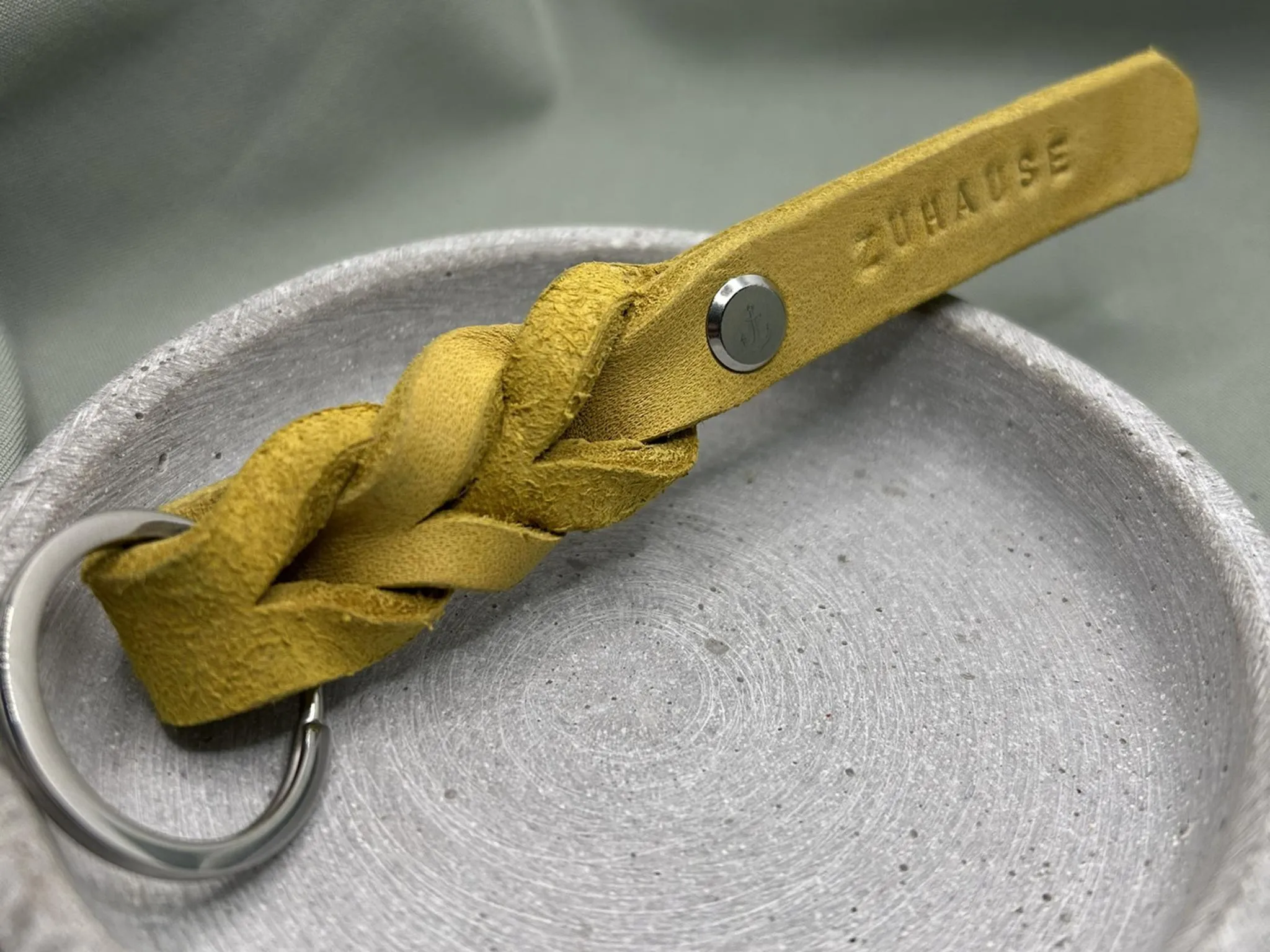 Geflochtener Schlüsselanhänger mit Prägung auf dem Leder