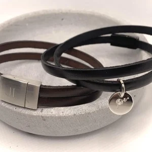 Dieses Set aus zwei Lederarmbändern besteht aus einem schmalen und einem breiten Freundschaftsband. Wir gravieren für Sie als Wunschtext beispielsweise die Namen der Kinder, einen Songtext oder ein Datum. Sie können Ihre Botschaft auch auf der Innenseite gravieren lassen und so geheime Botschaften verschenken. Sehr beliebt sind bei dem Set die gemeinsamen Koordinaten des Wohnortes, der Geburt der Kinder oder der Ort des ersten Kusses.