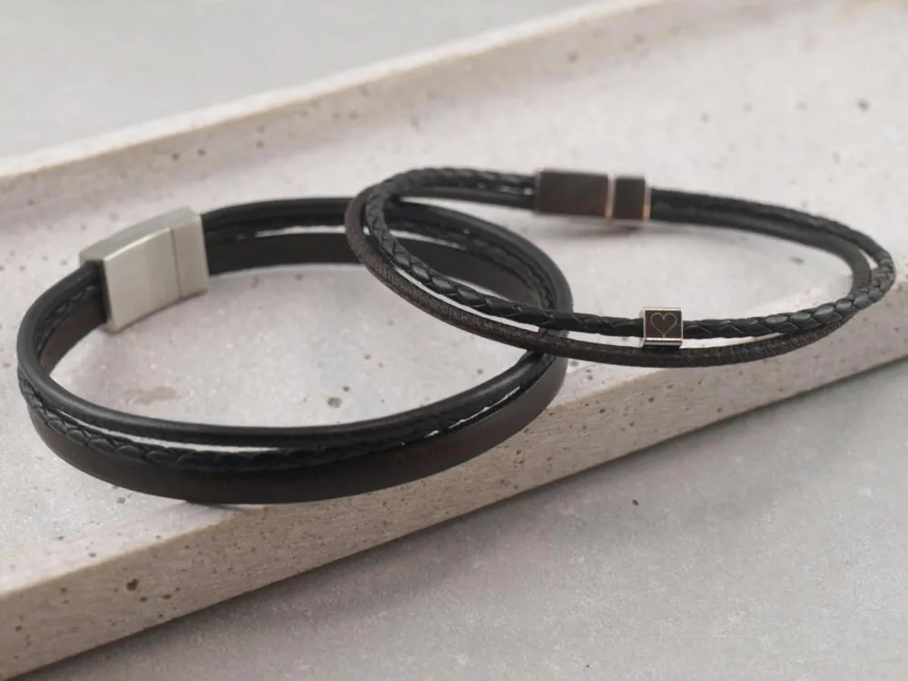 Freundschaftsarmbänder als Set, breites und schmales Armband aus glattem und geflochtenen Leder