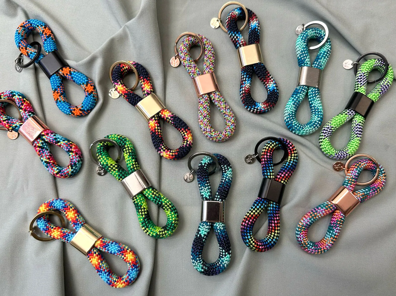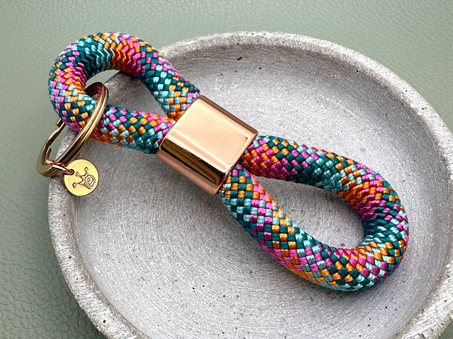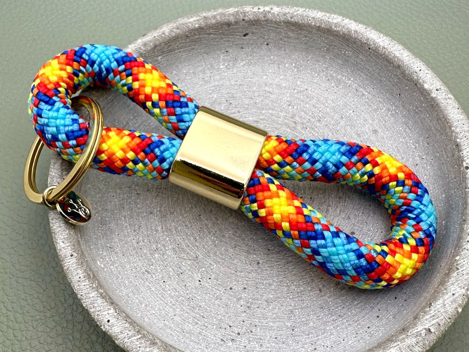 Schlüsselanhänger aus Segeltau mit Gravur Option in bunten Frühlingsfarben