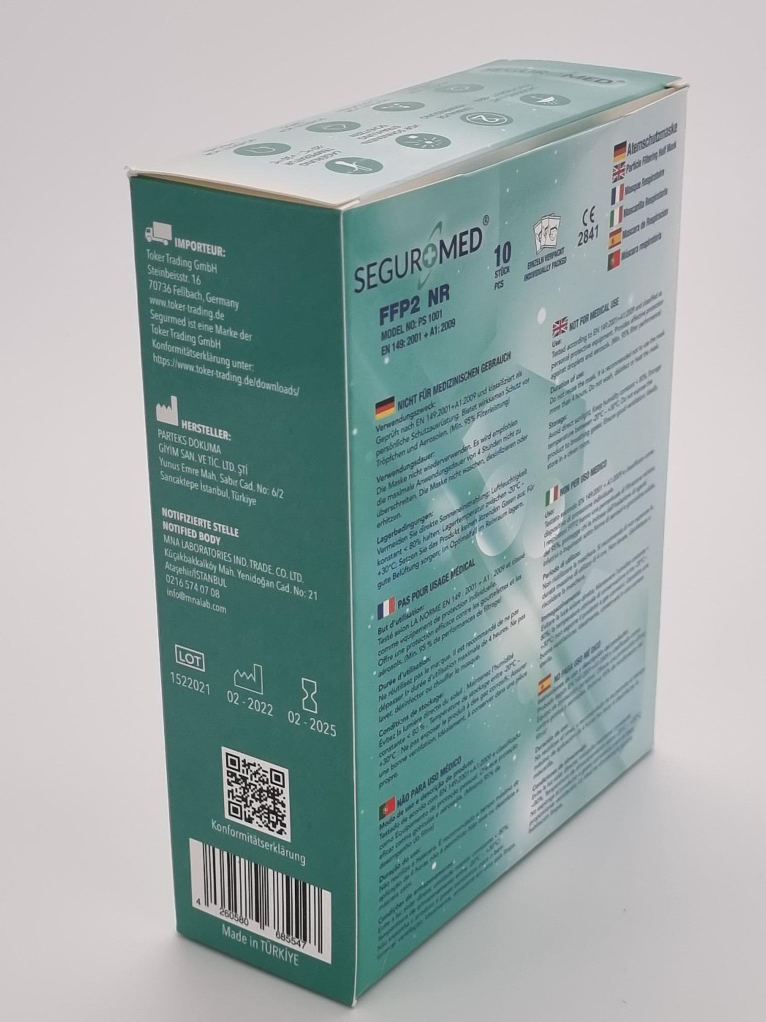 In Zusammenarbeit mit unseren langjährigen Lieferanten können wir hochwertige Produkte zur Verfügung stellen, die strenge Qualitätskontrollen durchlaufen. Unsere Mitarbeiter sind stetig damit beschäftigt die Qualität unserer SEGURMED FFP2 Atemschutzmaske CE2841 zu kontrollieren. Unsere Mission ist es, dem deutschen Markt eine große Menge an Masken und anderen Schutzartikeln zu günstigen Preisen zur Verfügung zu stellen.