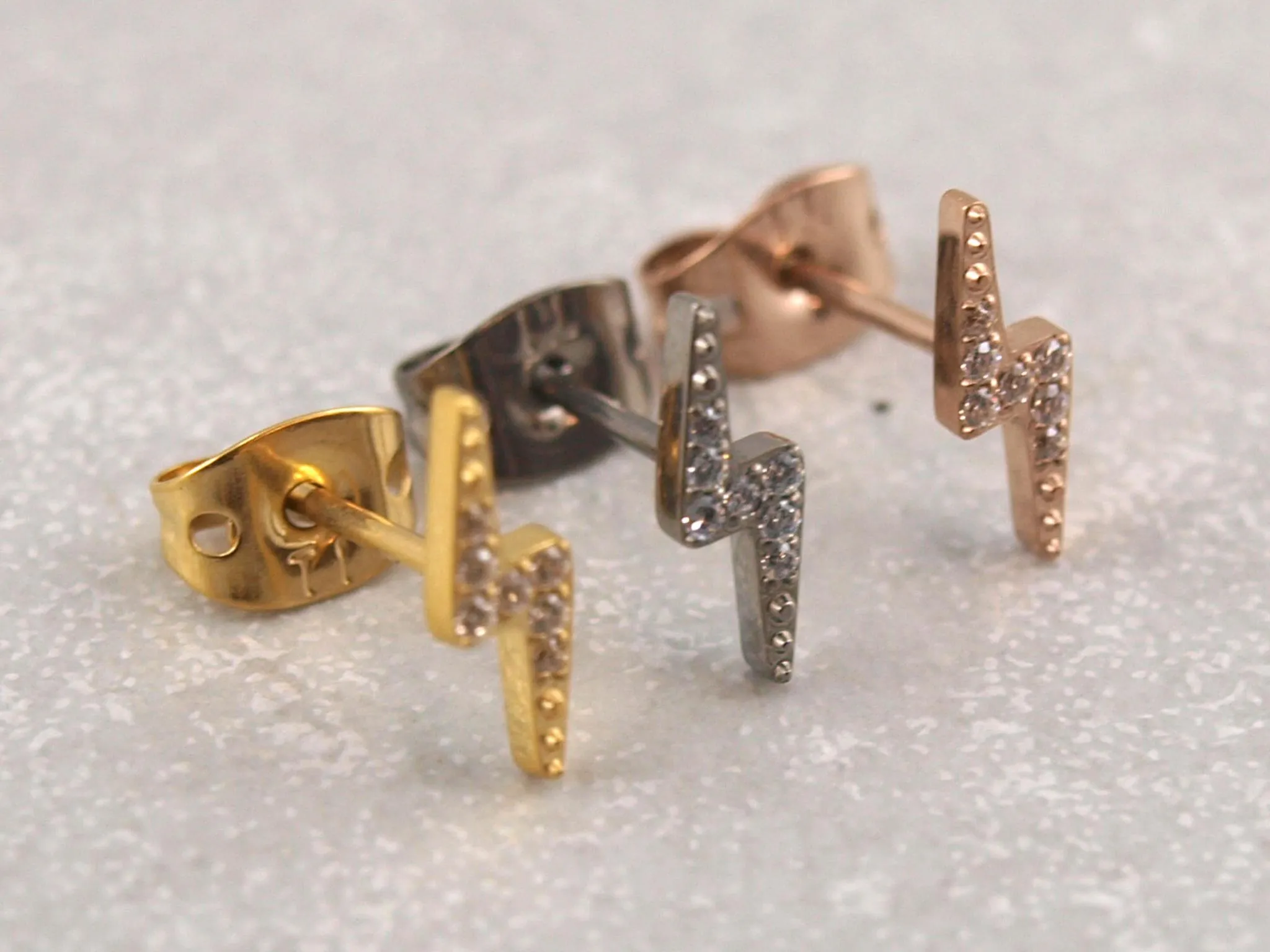 Blitz aus Titan als Ohrstecker mit funkelnden Kristallen in Silber, Gold oder Roségold