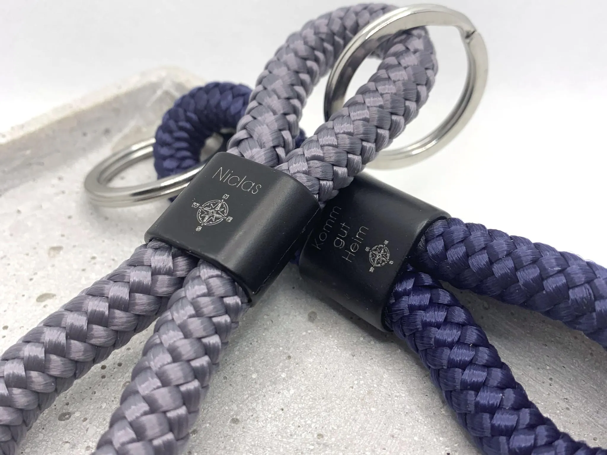 Geschenkset zwei Schlüsselanhänger aus Segeltau mit Gravur Option